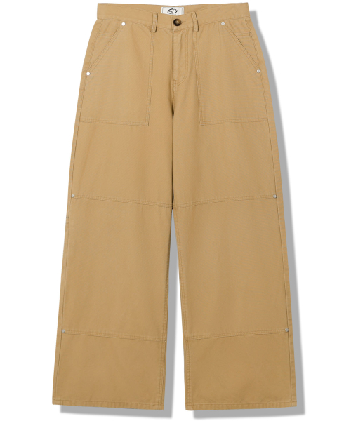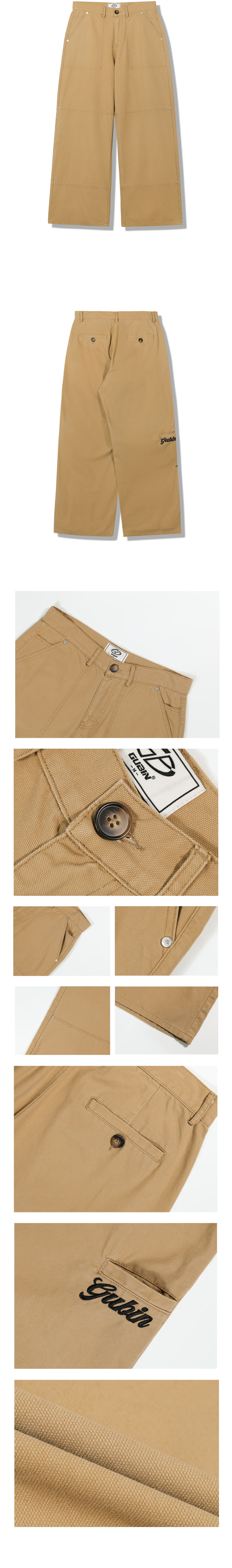 와이드 코튼 밀리터리 카고 팬츠 - 베이지