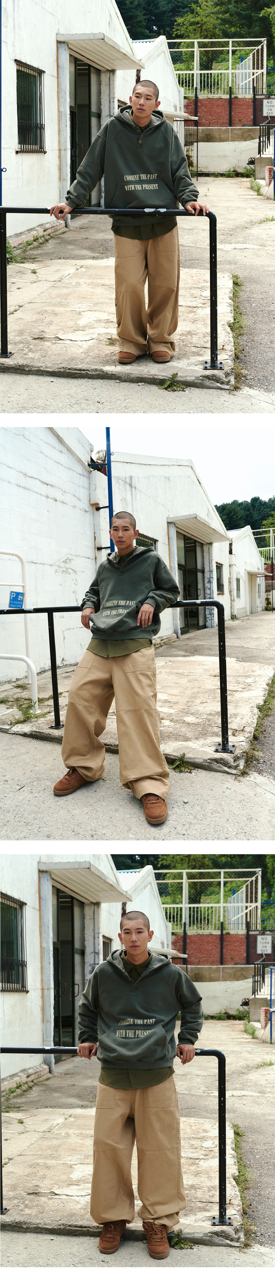 빈티지 워시드 테일 포켓 코튼팬츠 - 카키