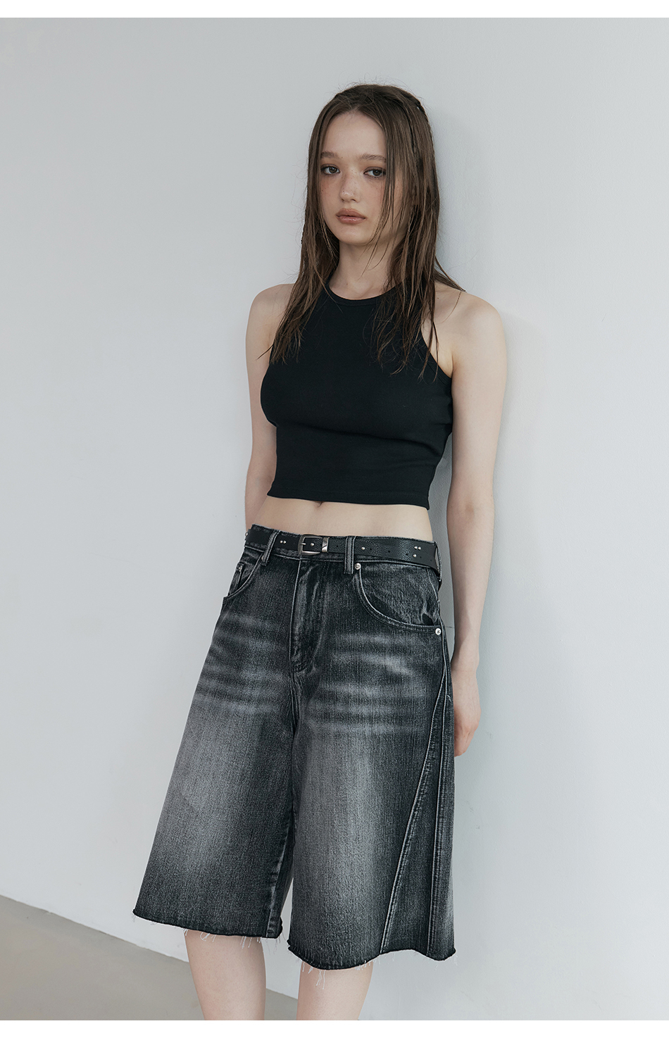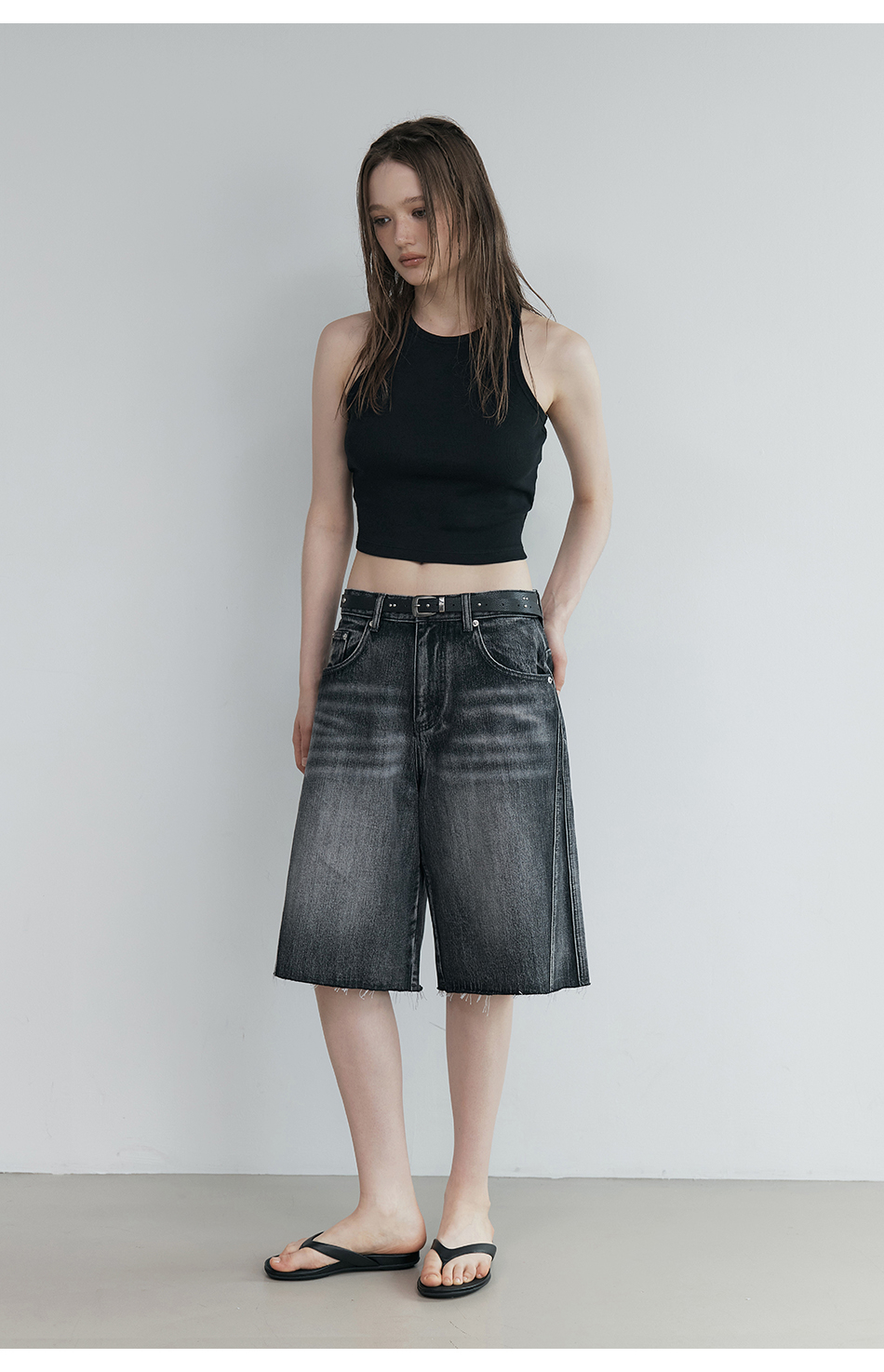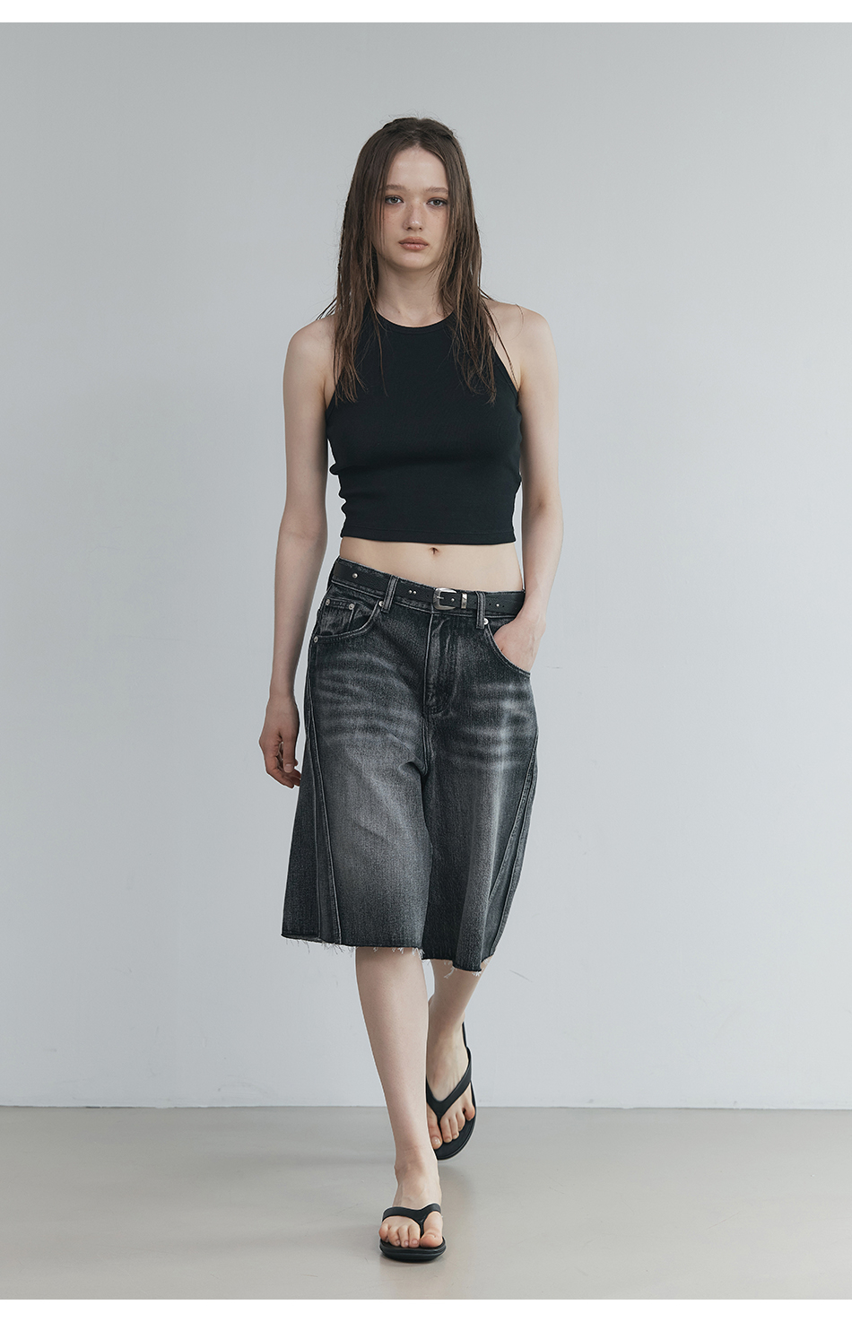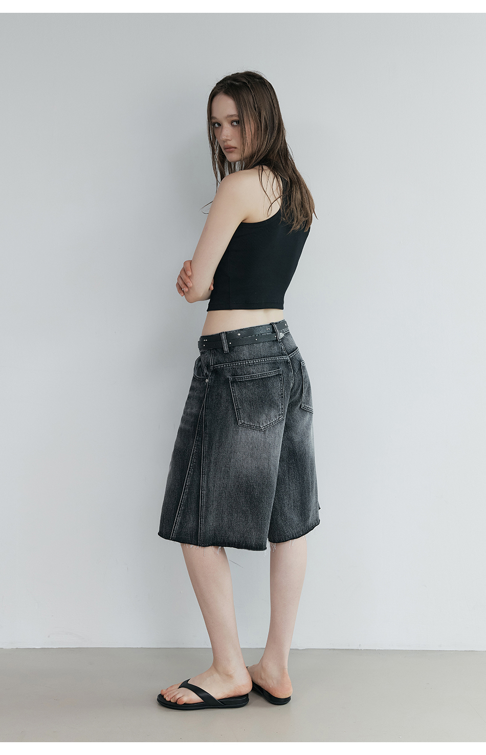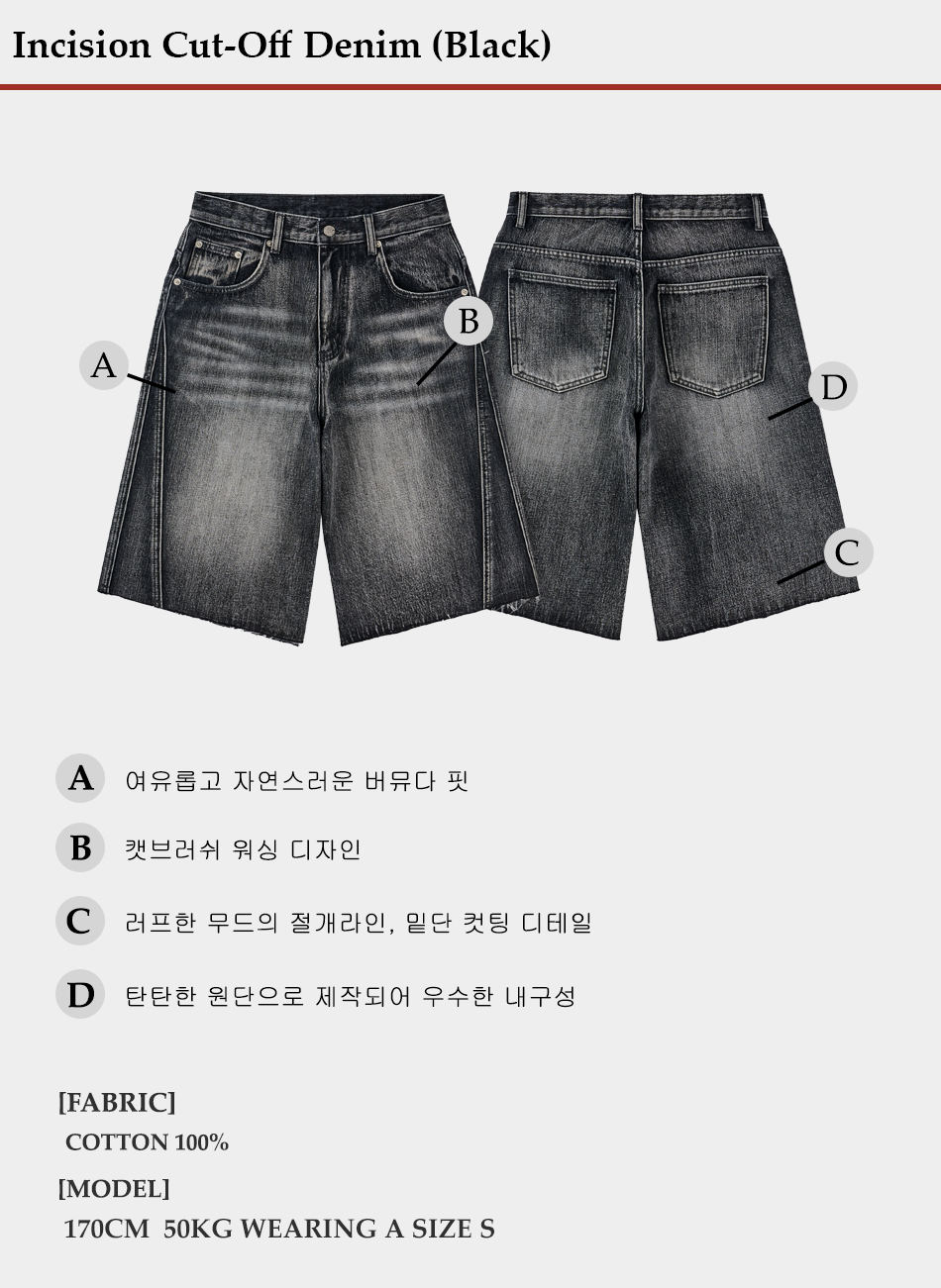 인시션 컷오프 데님 (블랙)