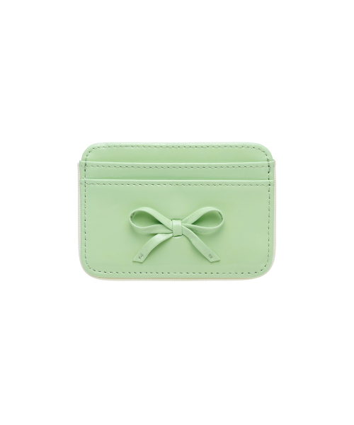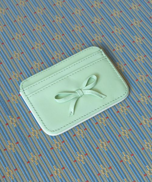 리본 파이핑 소가죽 카드지갑 멜론