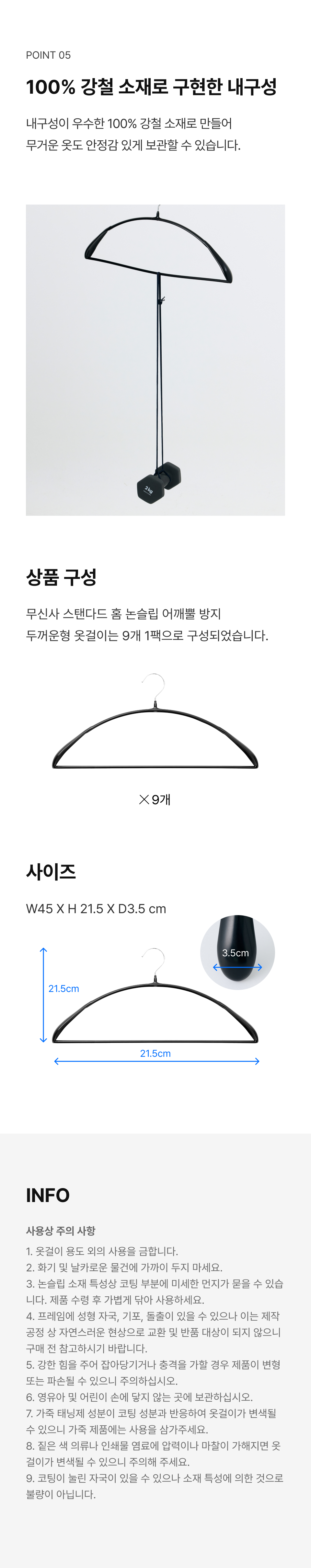논슬립 어깨뿔방지 라운드 옷걸이 두꺼운형 9개 블랙