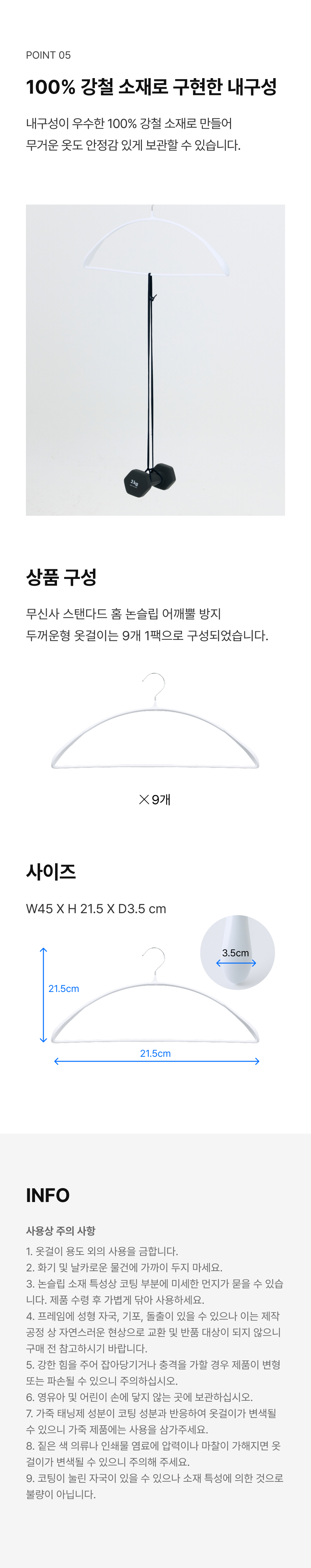 논슬립 어깨뿔방지 라운드 옷걸이 두꺼운형 9개 화이트