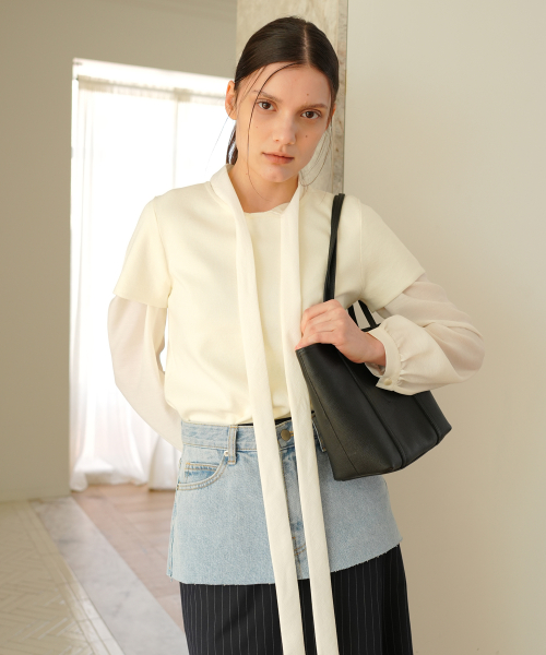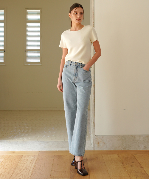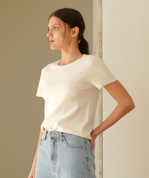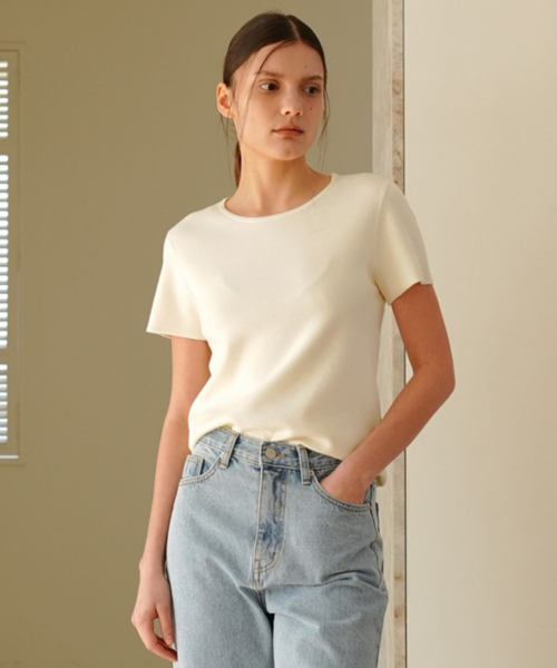 미니멀한 무드의 라운드넥 니트 탑입니다.