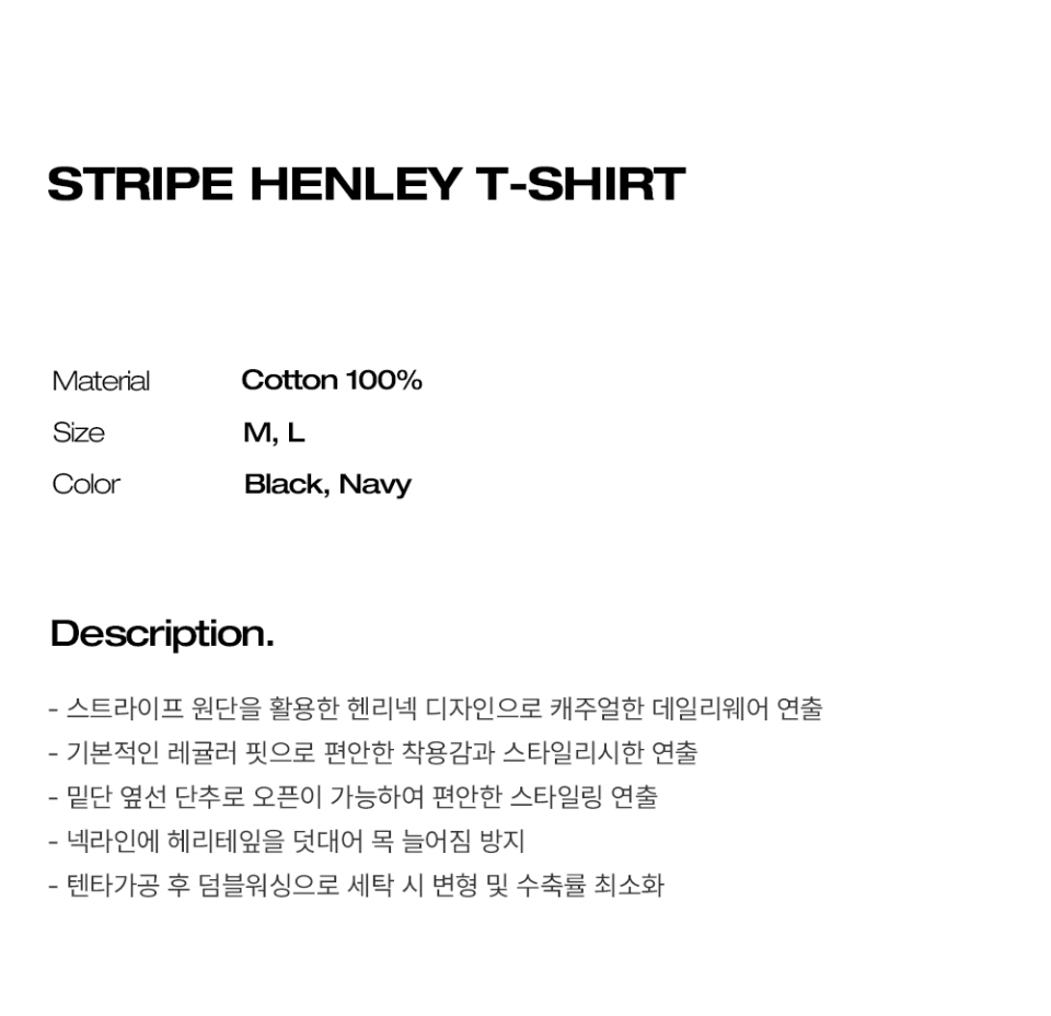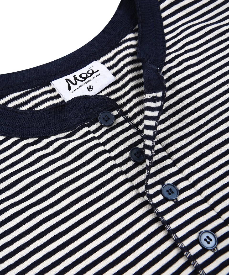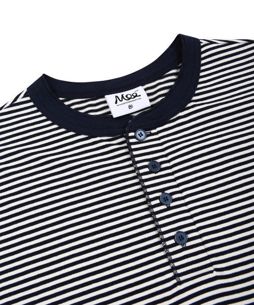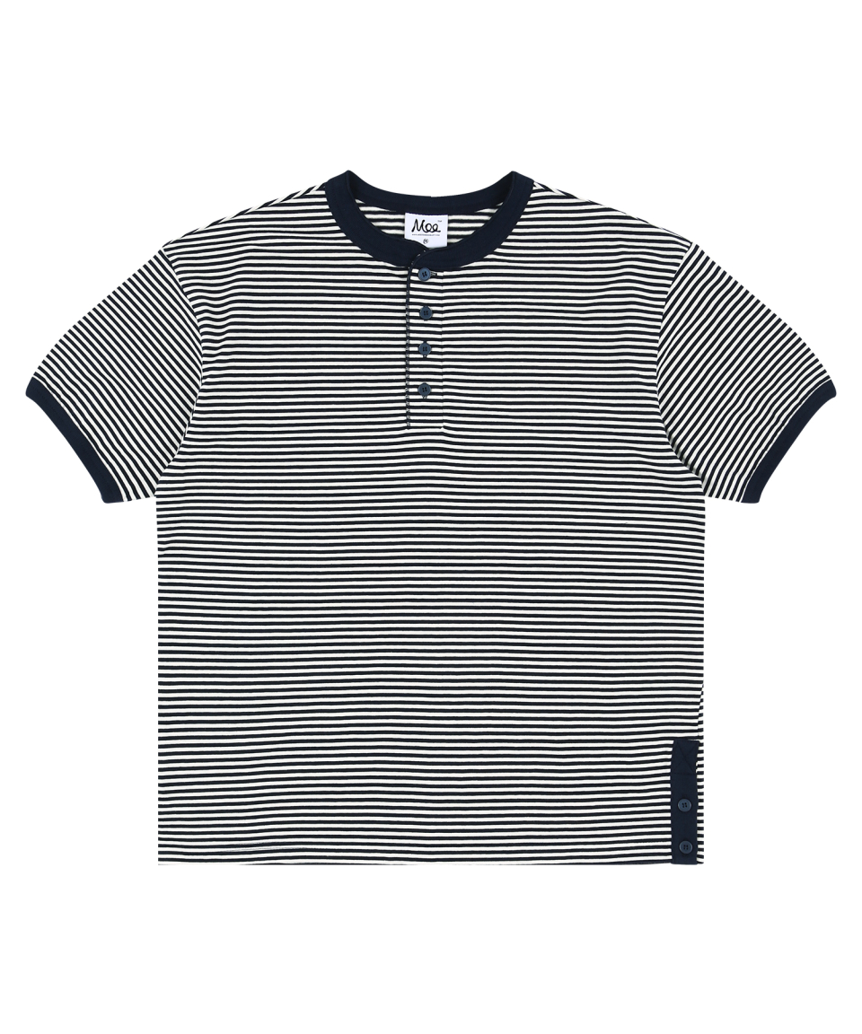 스트라이프 헨리넥 반팔티 - 크림네이비