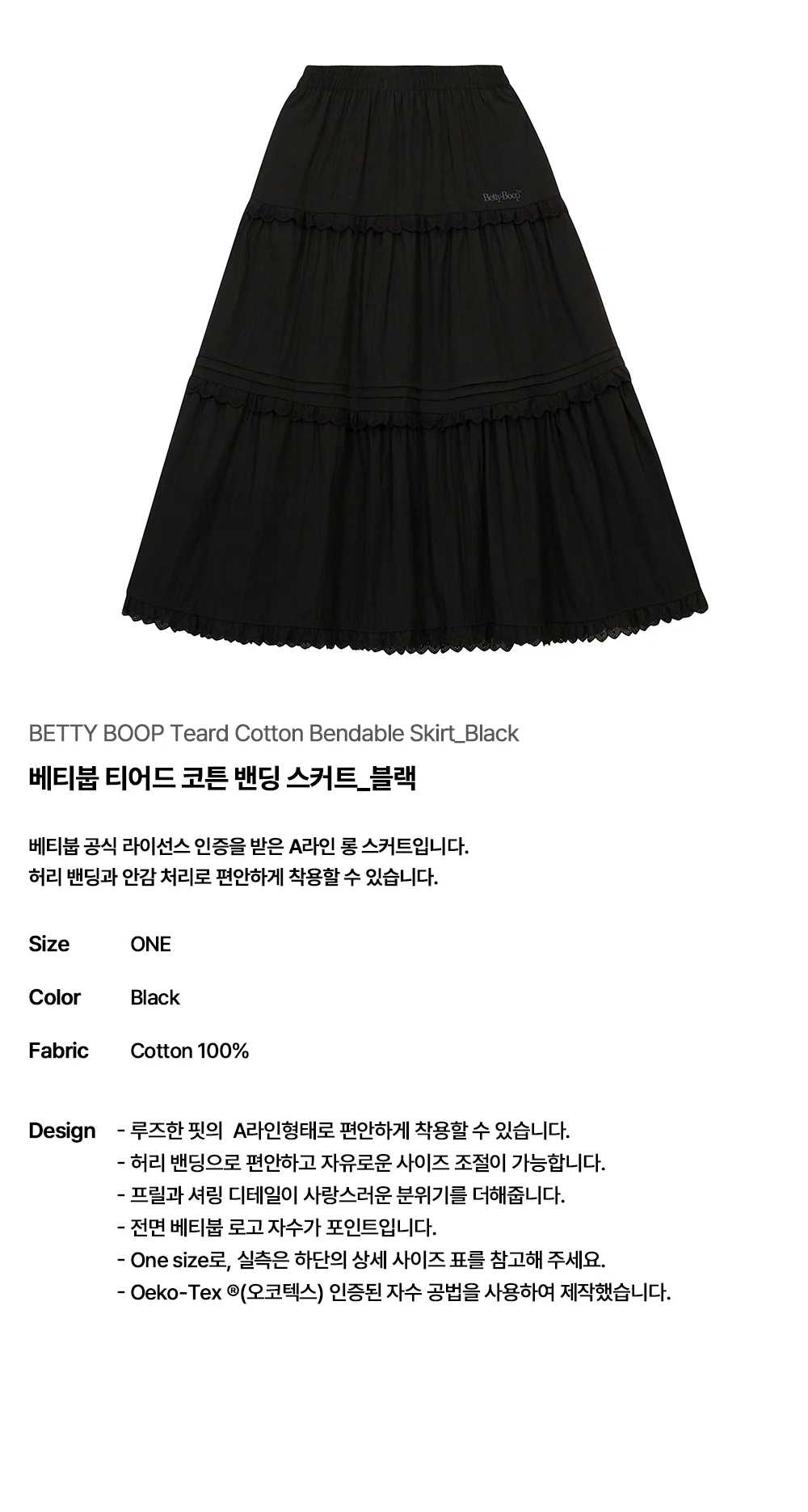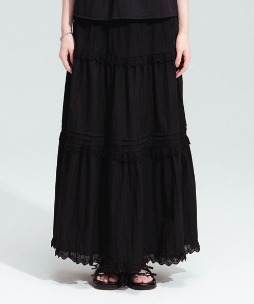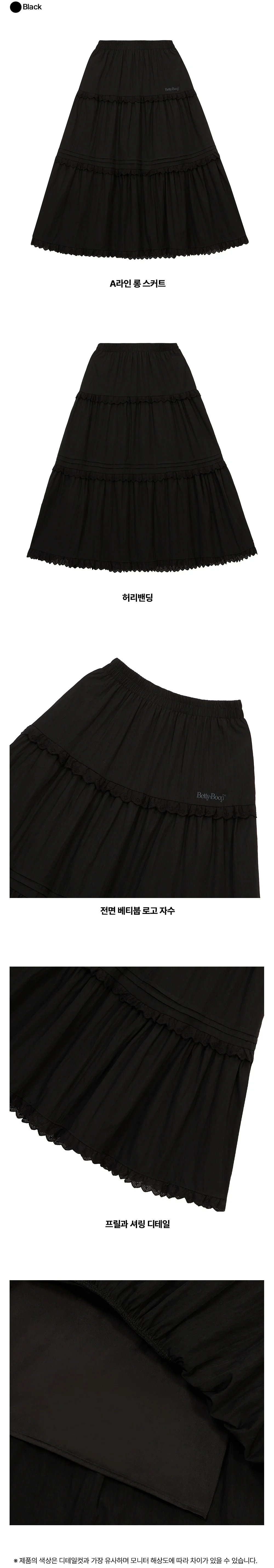 베티붑 티어드 코튼 밴딩 스커트_블랙