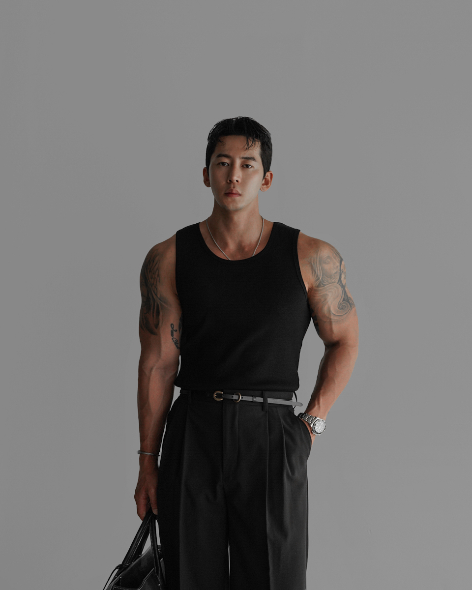 - 몸에 자연스럽게 맞는 과하지 않은 머슬핏 실루엣