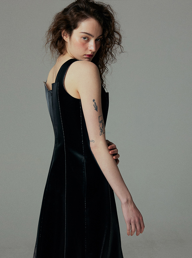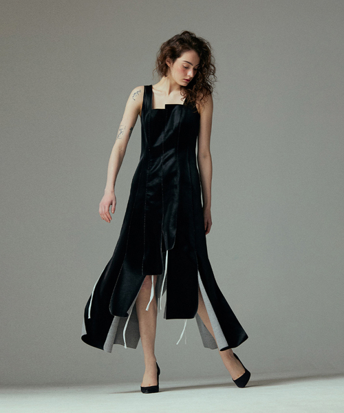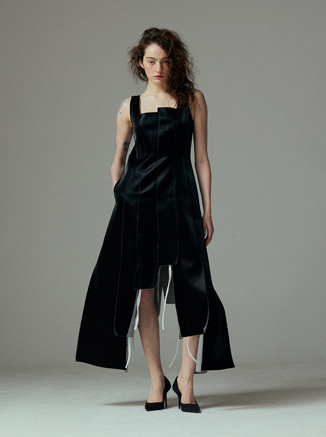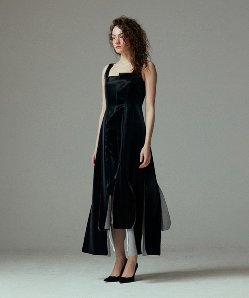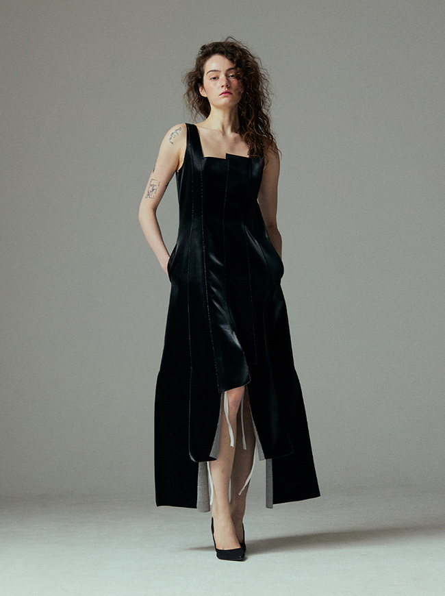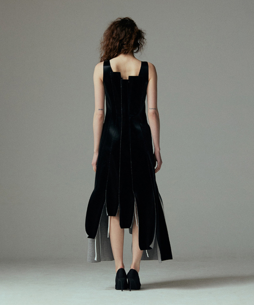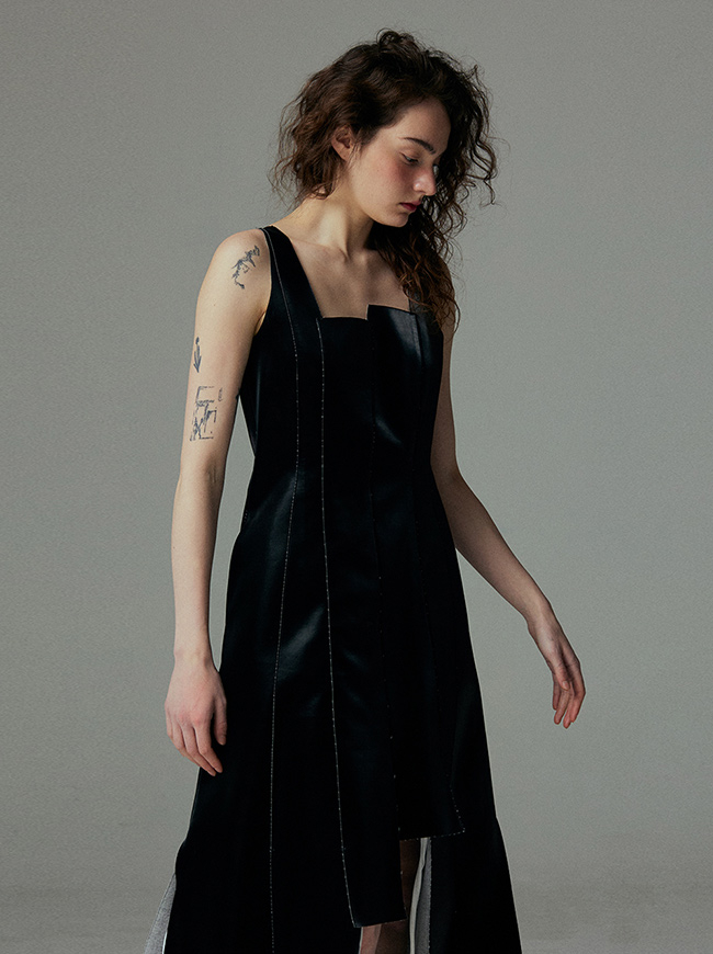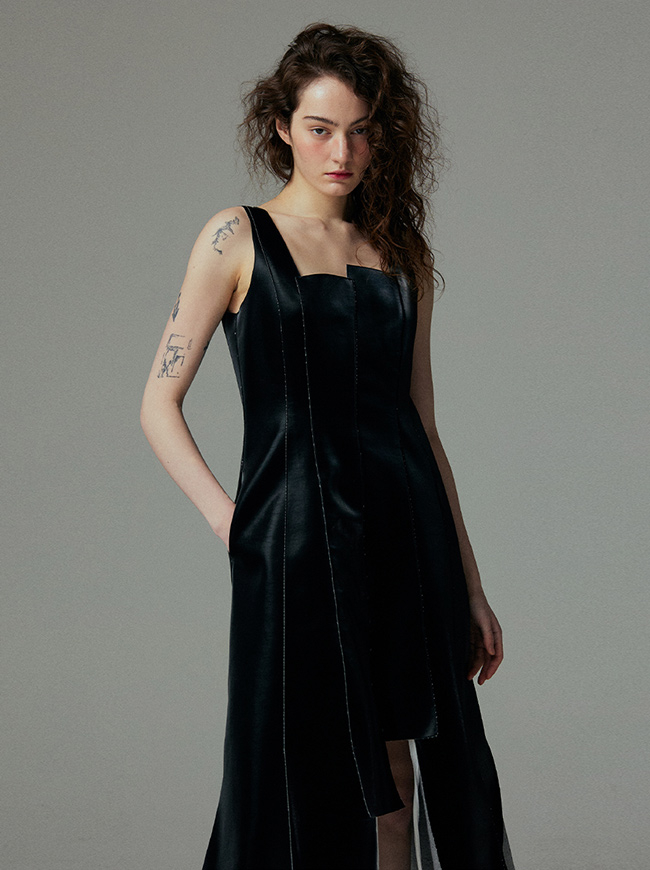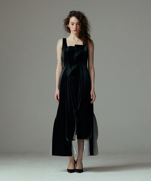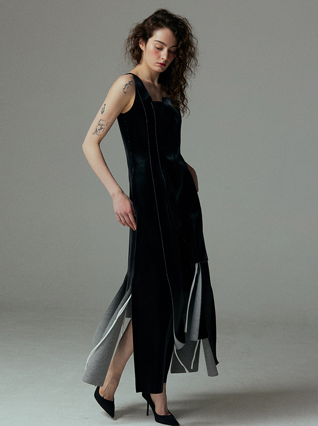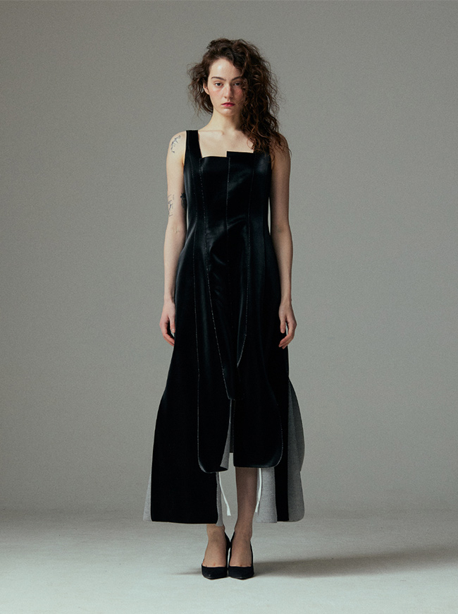 - 언발란스한 패치워크 디테일의 라인감이 돋보이는 슬리브리스 드레스