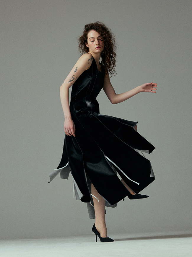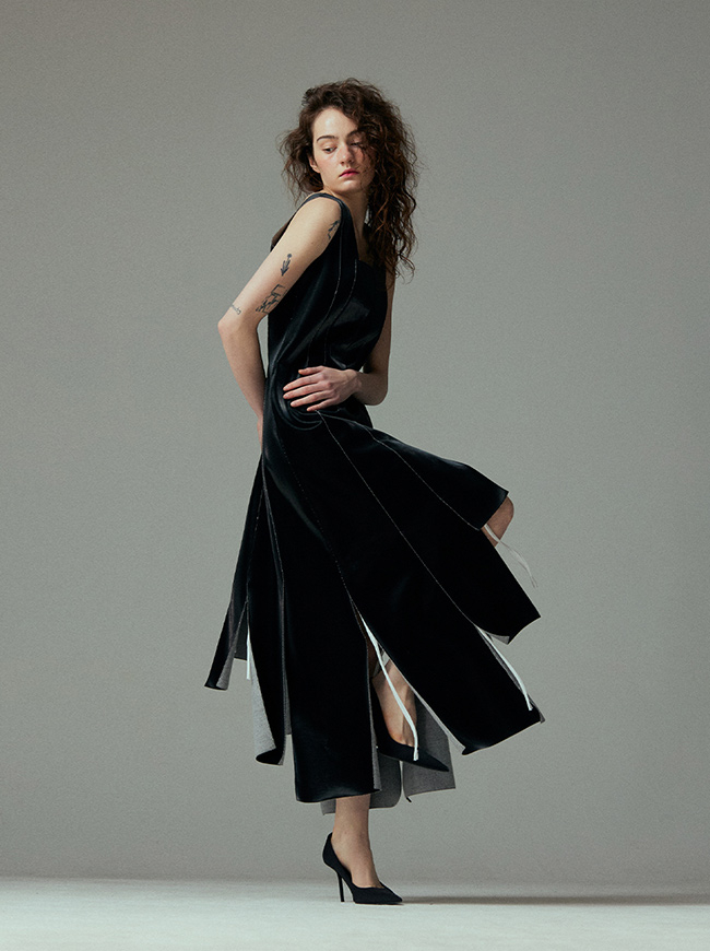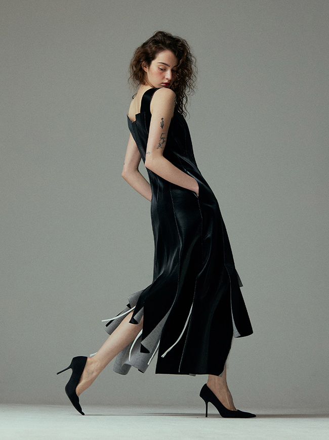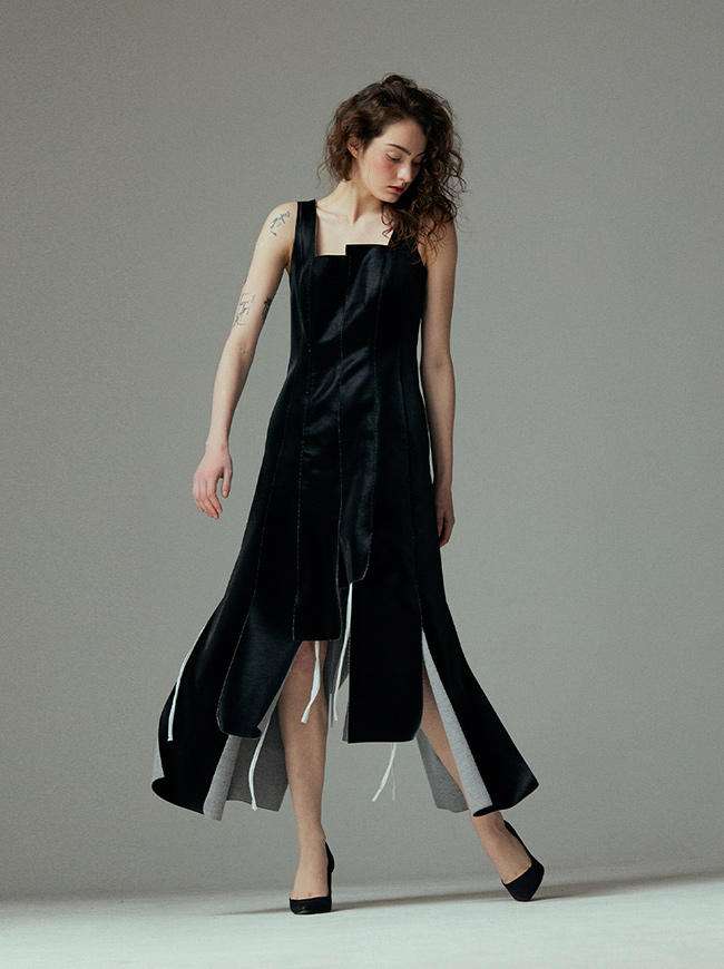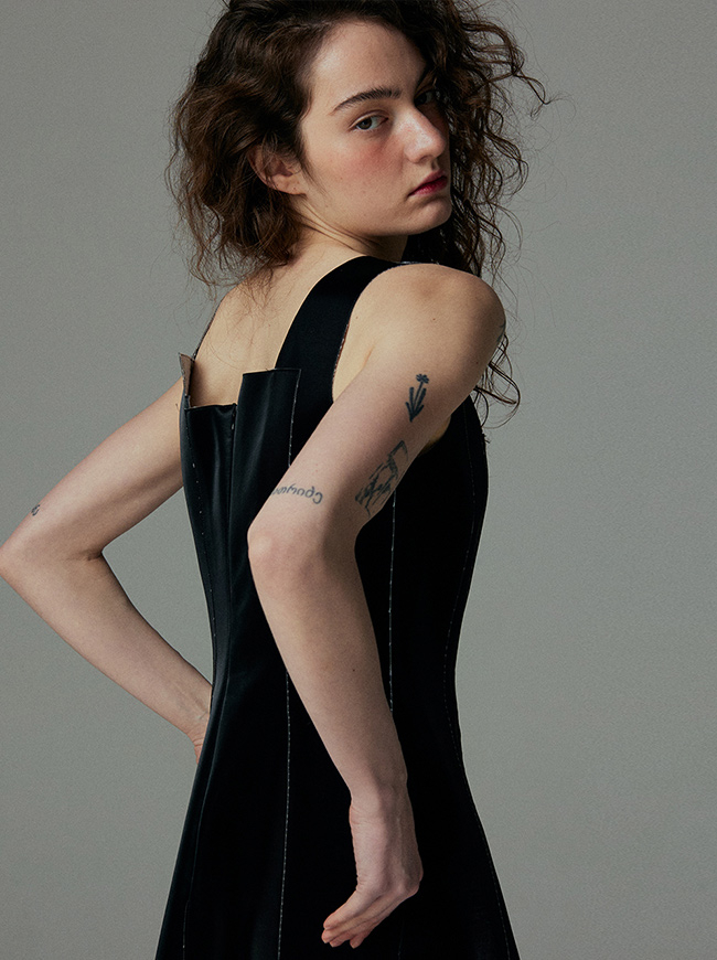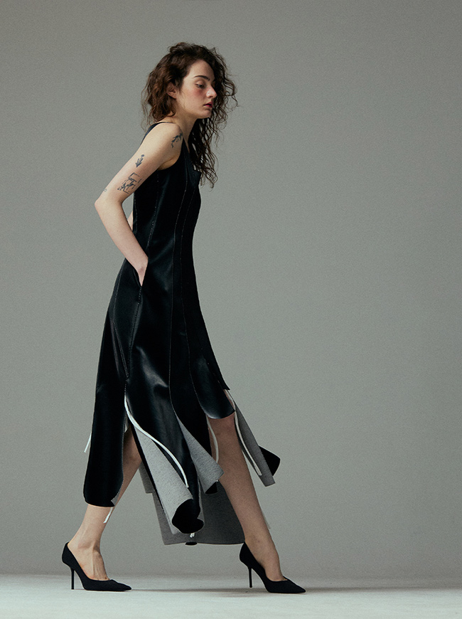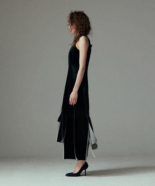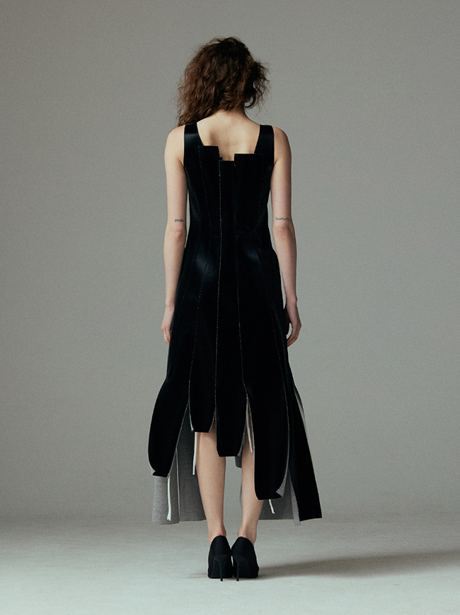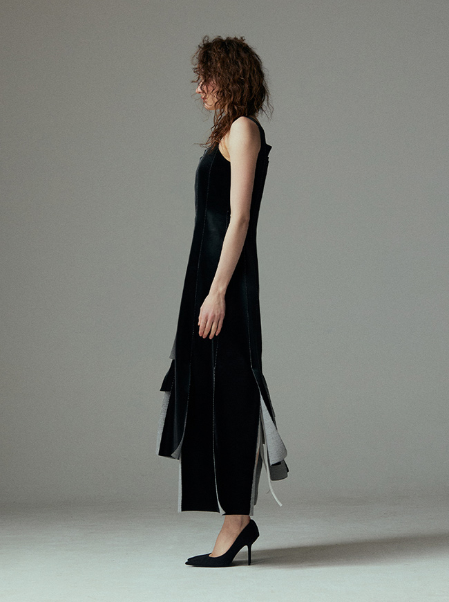 - 언발란스한 패치워크 디테일의 라인감이 돋보이는 슬리브리스 드레스