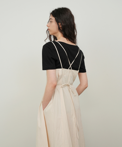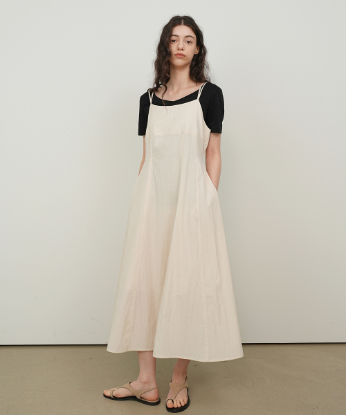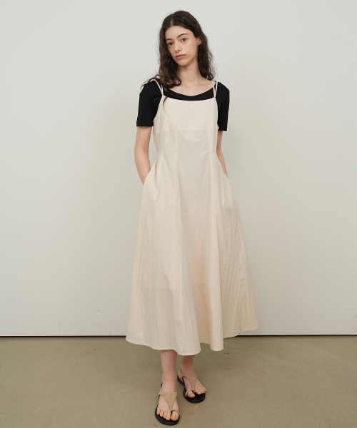 두 줄의 어깨끈이 포인트인 캐미솔 원피스입니다.