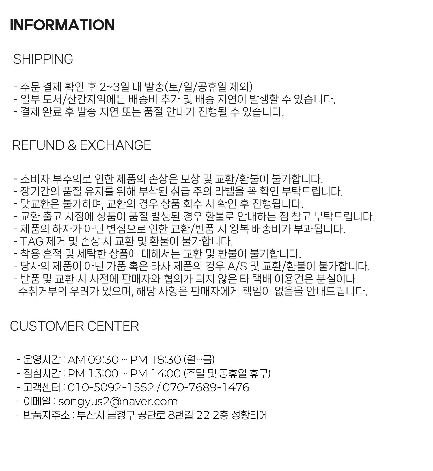 그랜피니(GRANFINNY)는 100명이 한번 구매하는 브랜드 보다 1명이 100번 사는 브랜드를 기반으로 만든 브랜드이며, 옷의 퀄리티를 위해 원사부터 부자재, 디자인 생산까지 국내 생산을 고집하며 직접 관리 제작합니다.