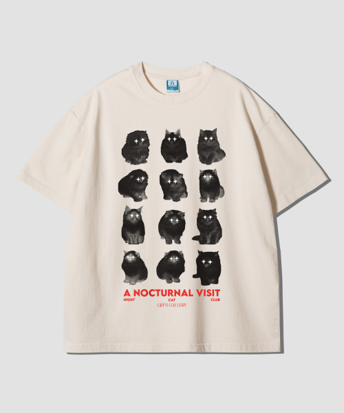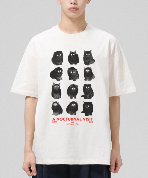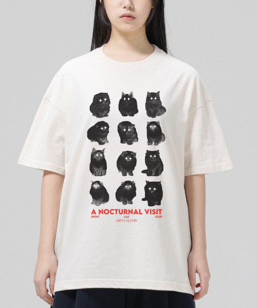 나이트 캣 클럽 오버핏 반팔티-내추럴코튼