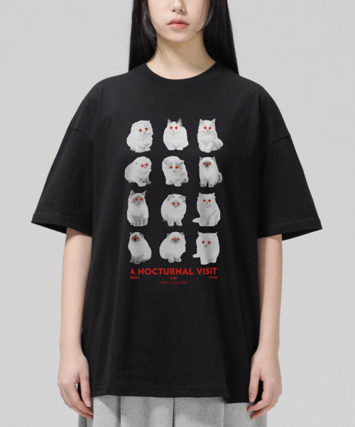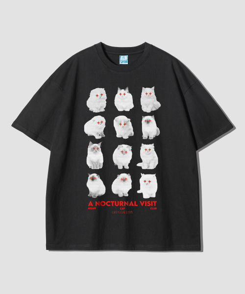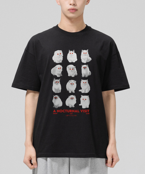 나이트 캣 클럽 오버핏 반팔티-블랙