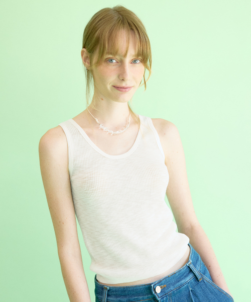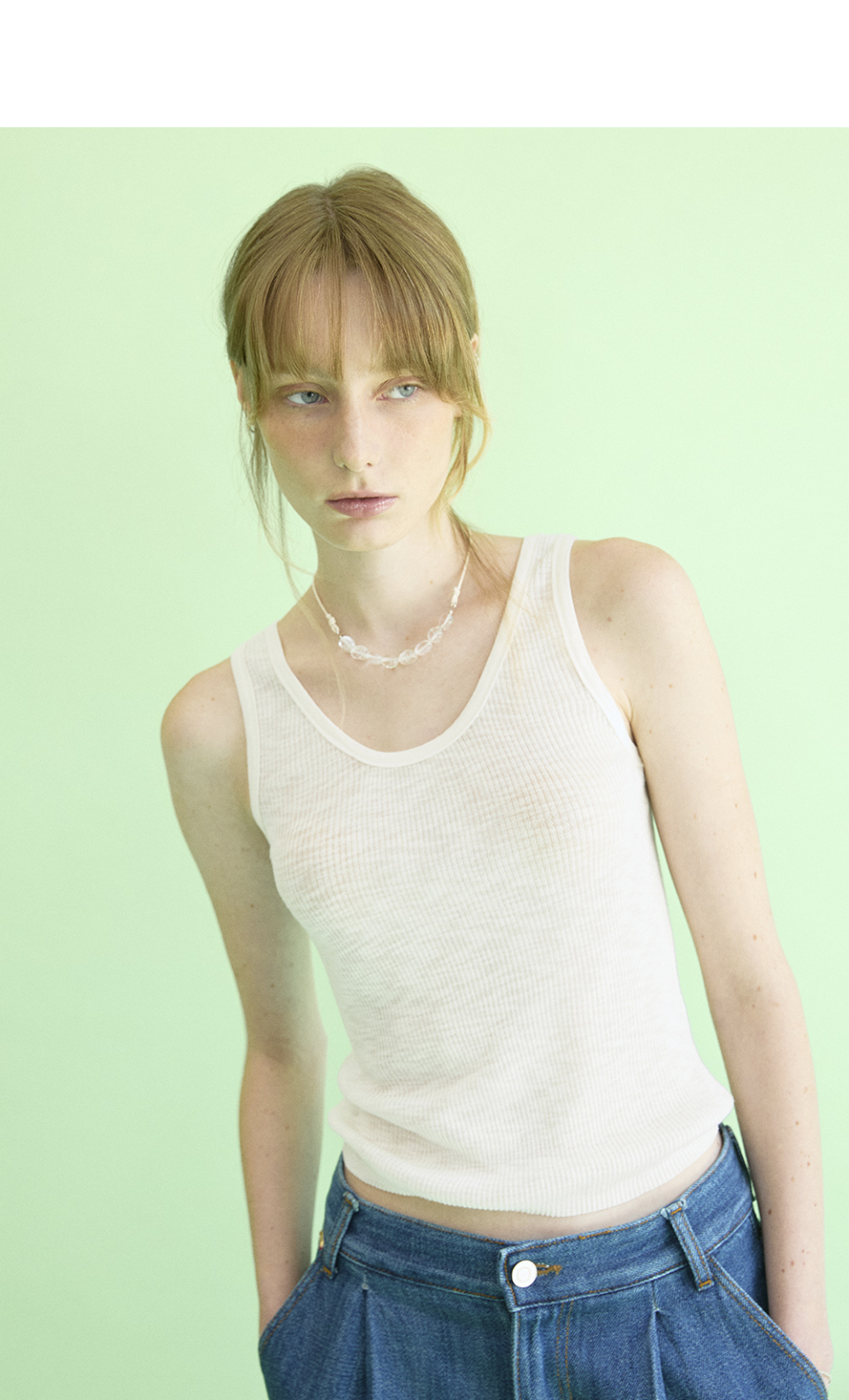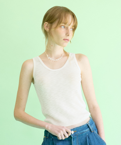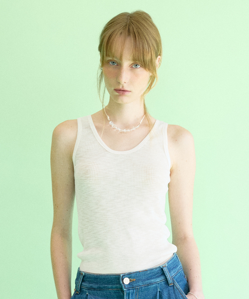 린넨 혼방 원사로 가볍고 통기성 좋은 슬리브리스 니트입니다.