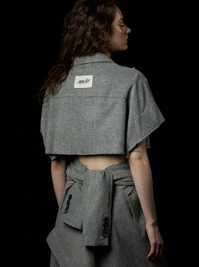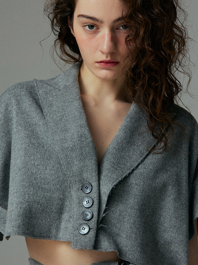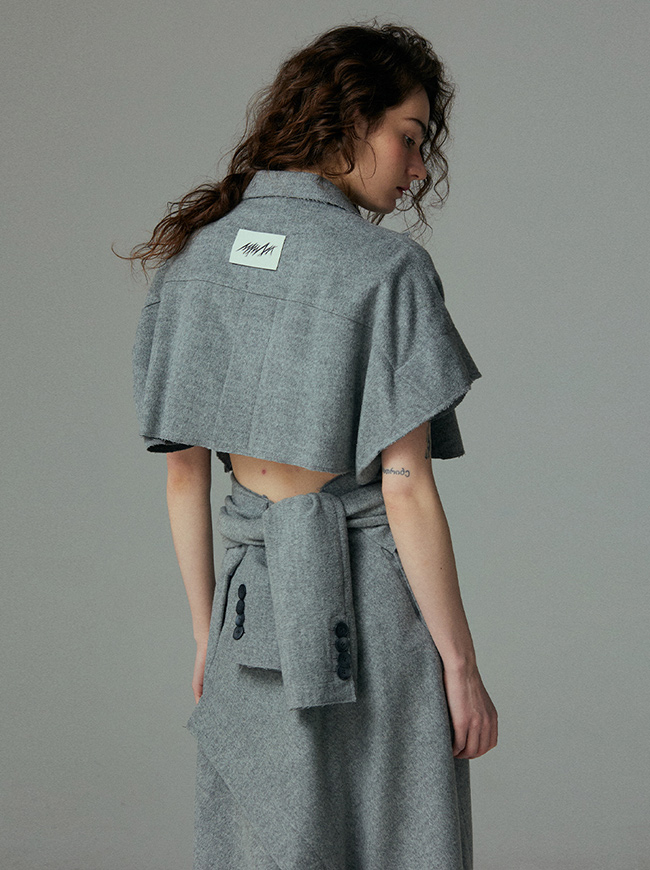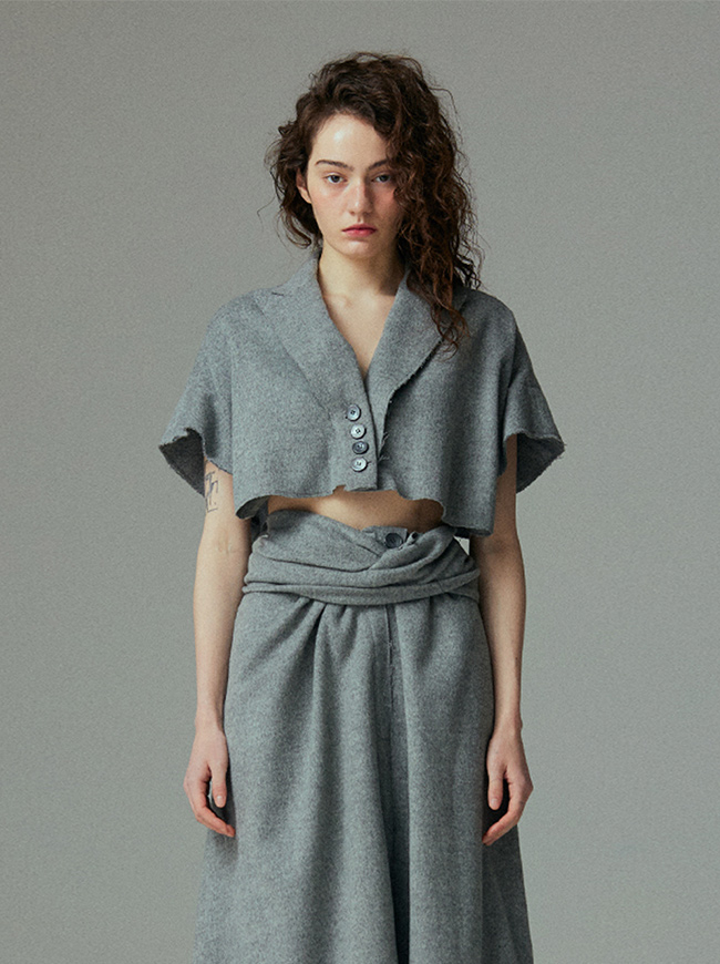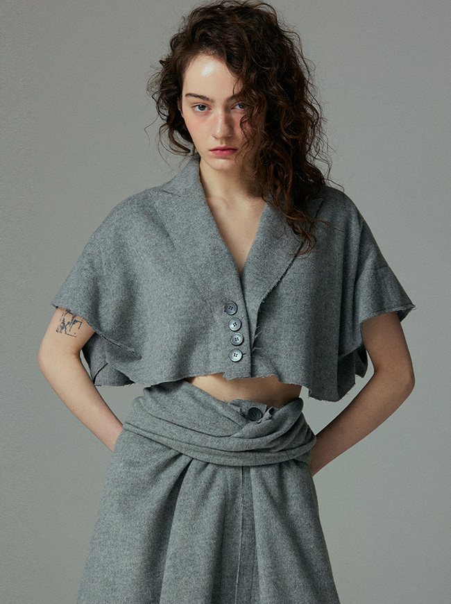 - 슬리브리스 크롭 코트와 동일한 소재를 사용하여 취향에 맞춰 셋업으로 착용가능