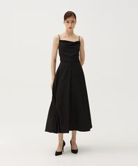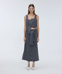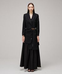 - 슬리브 스트랩을 묶어 허리라인에 고정하는 오버 실루엣의 롱스커트