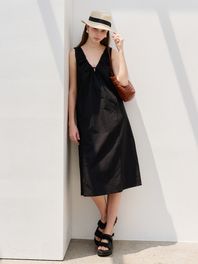 뒷 네크의 스트링으로 여밀 수 있으며