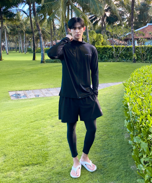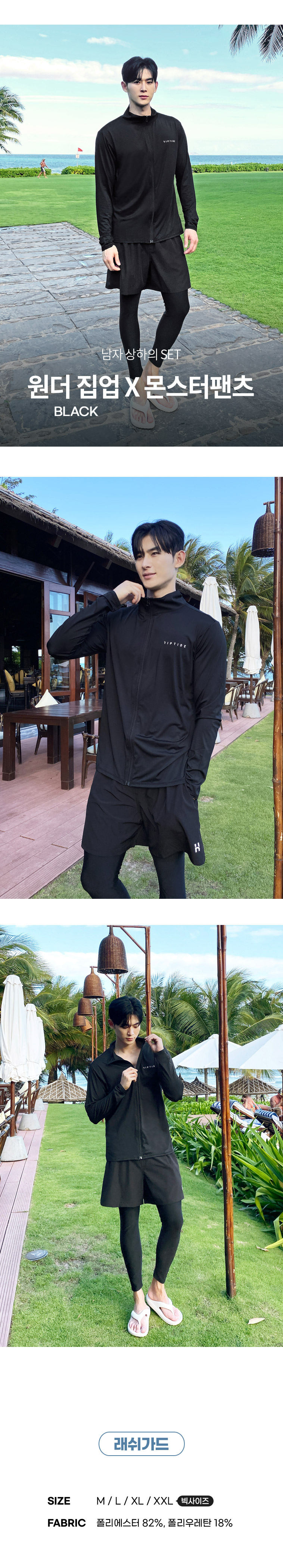 컷라인 슬림핏 커플 집업 래쉬가드 상의+하의 세트