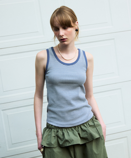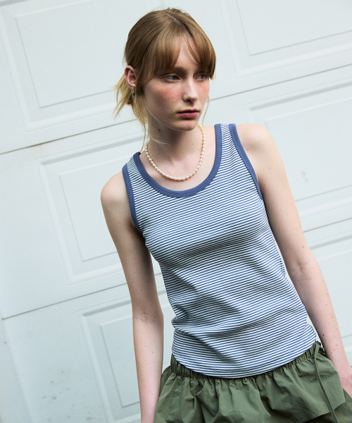 U Neck Stripe Sleeveless Blue