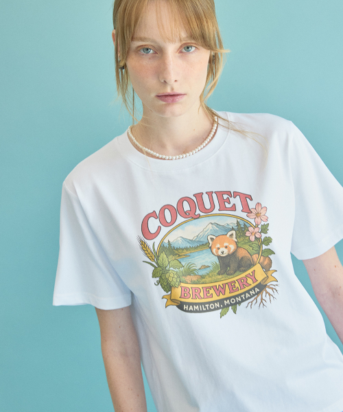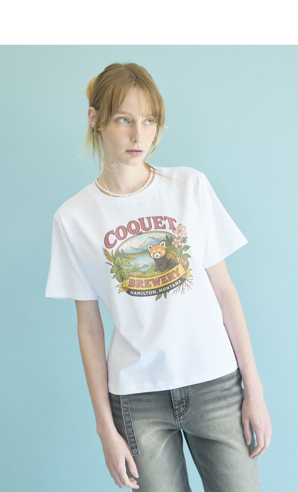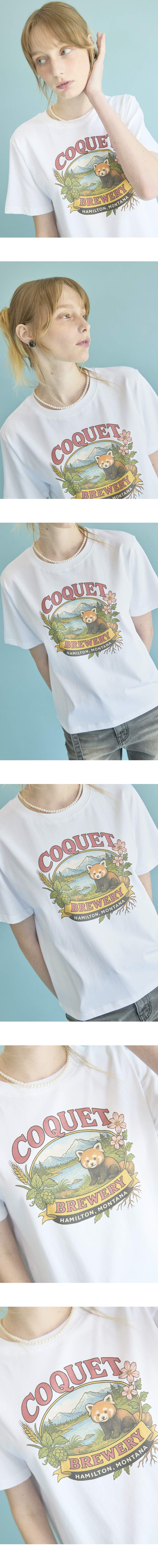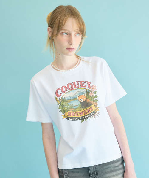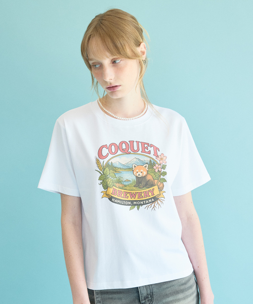 빈티지 감성의 담긴 그래픽 티셔츠입니다. 숲속 레서팬다와 야생화, 자연 풍경을 위트 있게 담아낸 일러스트가 포인트이며