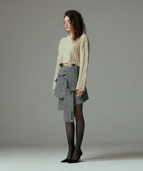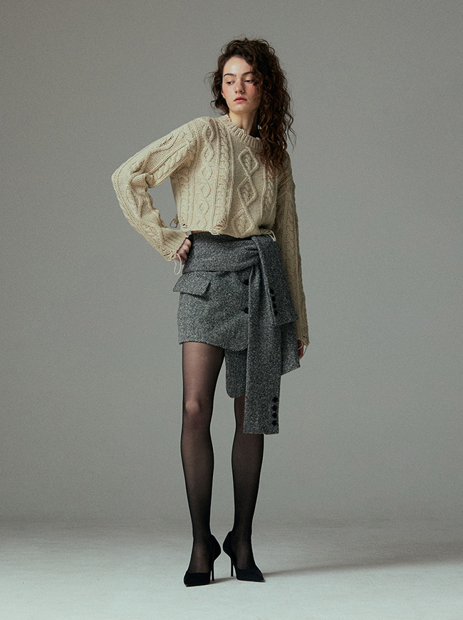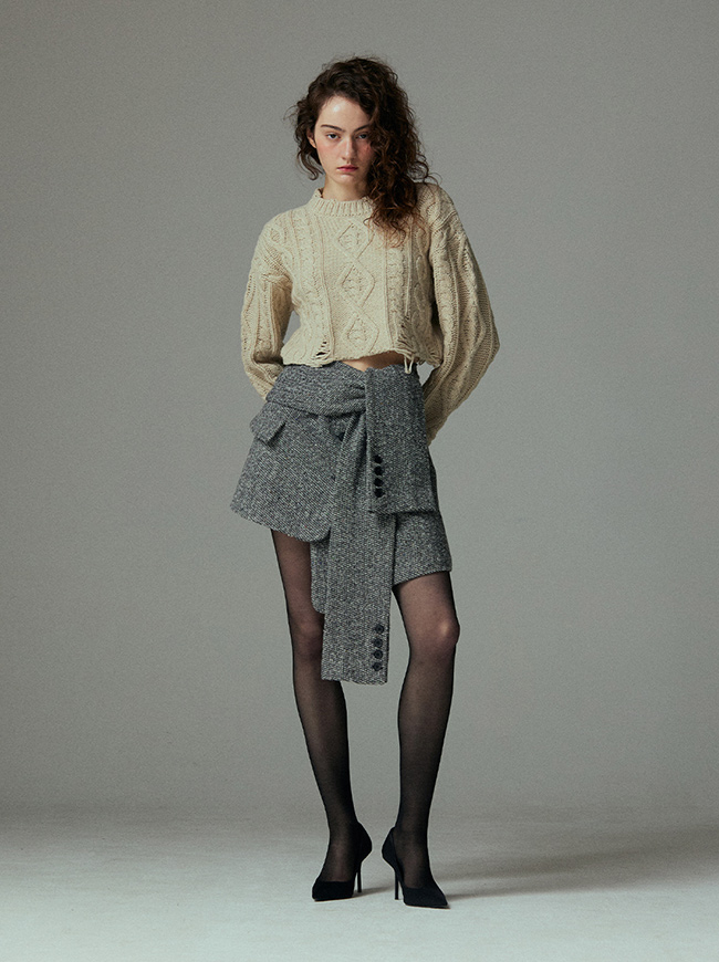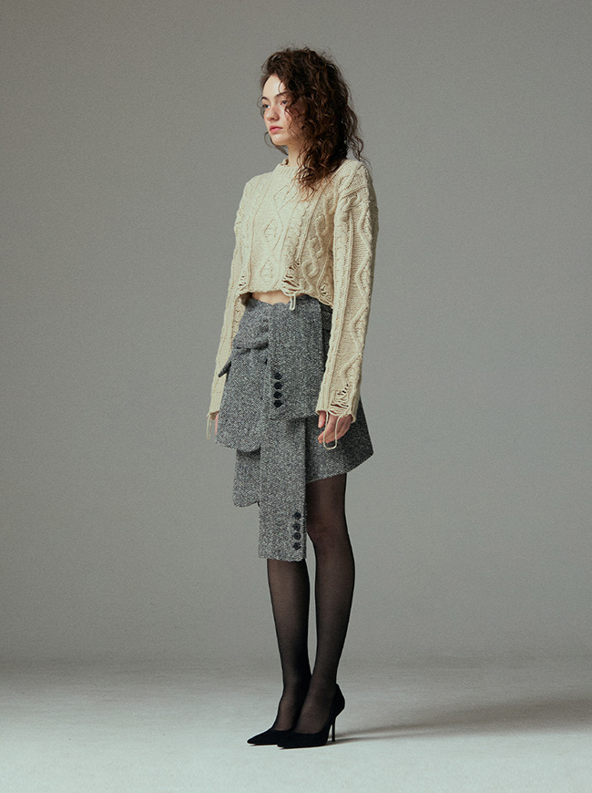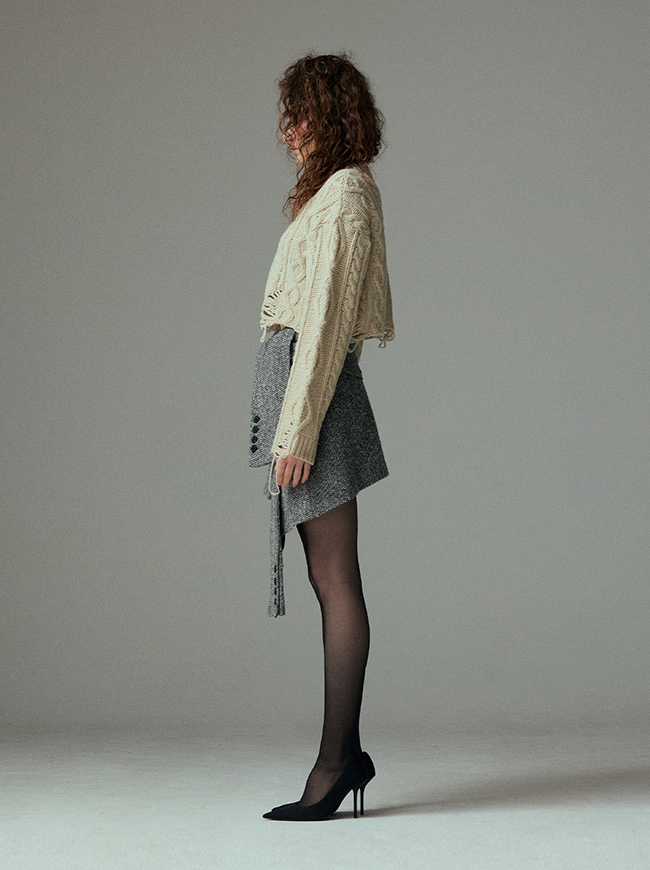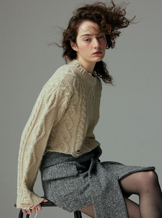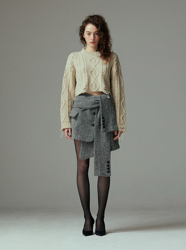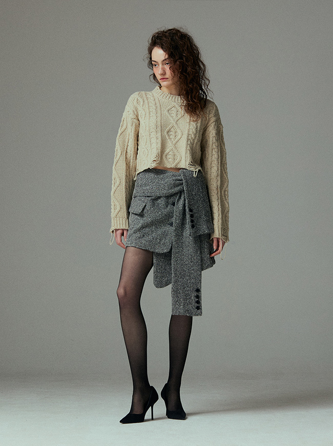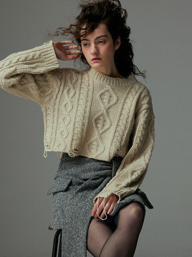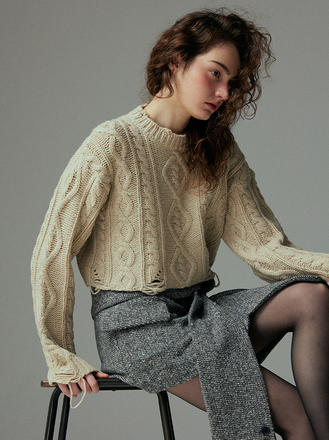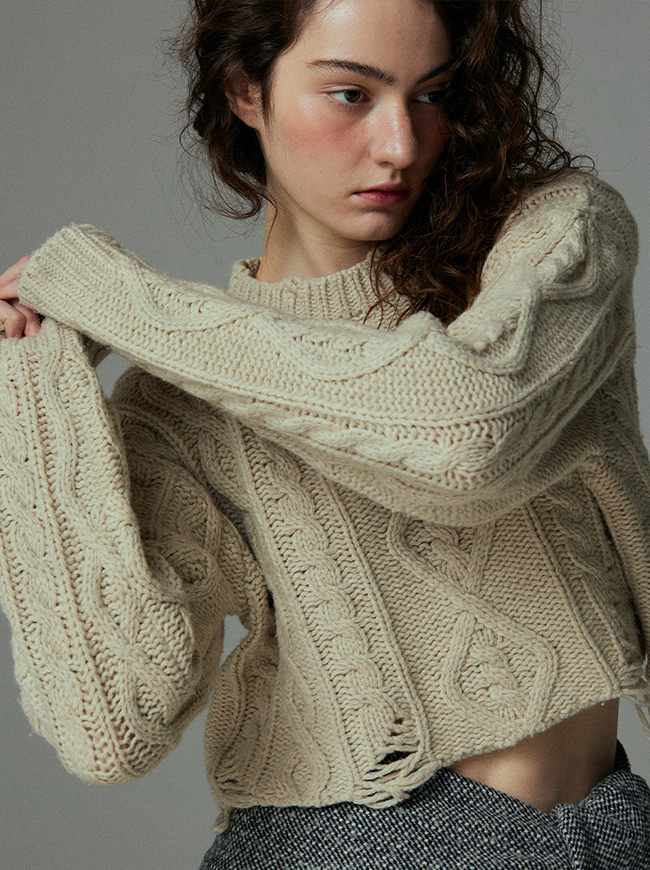 케이블 디스트로이드 크롭 니트