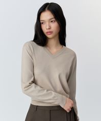 우먼즈 에센셜 브이 넥 니트 [그레이쉬 베이지]