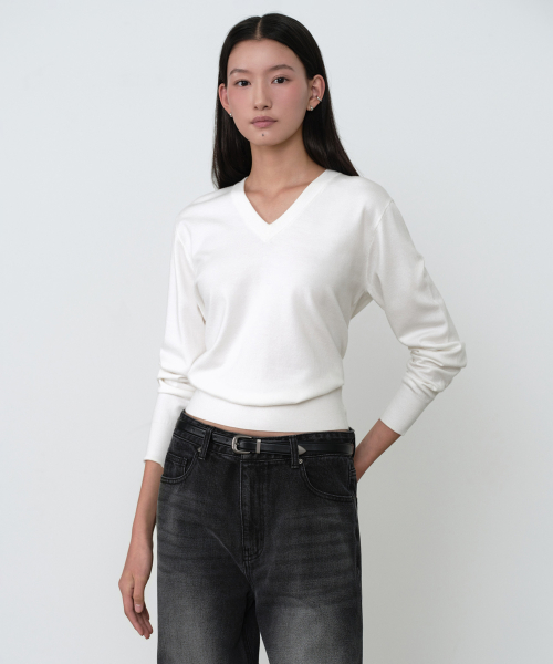 우먼즈 에센셜 브이 넥 니트 [아이보리]