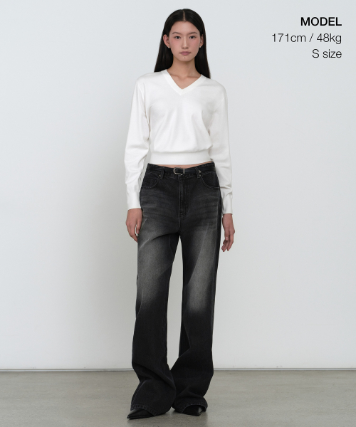 우먼즈 에센셜 브이 넥 니트 [블랙]