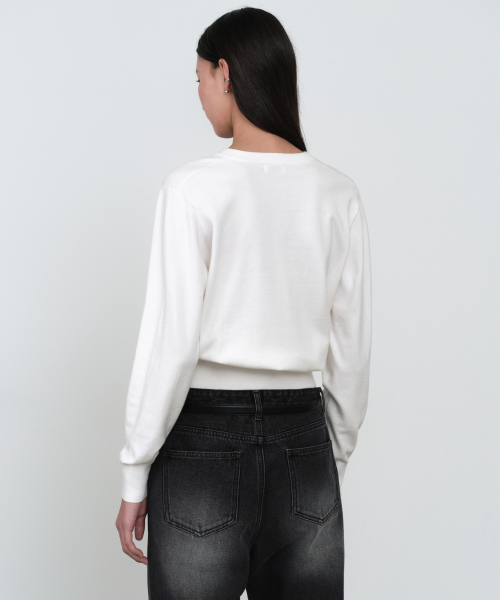 우먼즈 워셔블 수피마 코튼 크루 넥 니트 [아이보리]