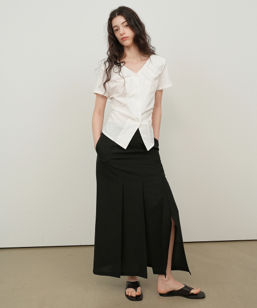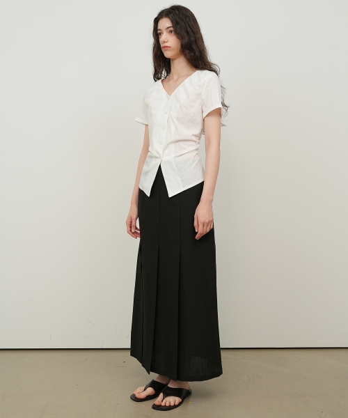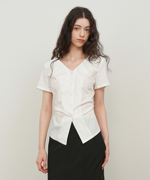 브이넥 셔링 블라우스