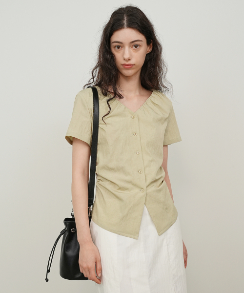 V NECK SHIRRING BLOUSE