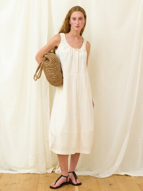 볼륨감 있는 실루엣의 슬리브리스 롱원피스