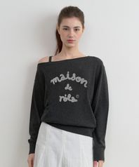 MAISON DE ROLA EMBROIDERY OFF SHOULDER KNIT CHARCOAL