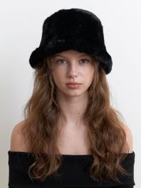 fur bucket hat - black