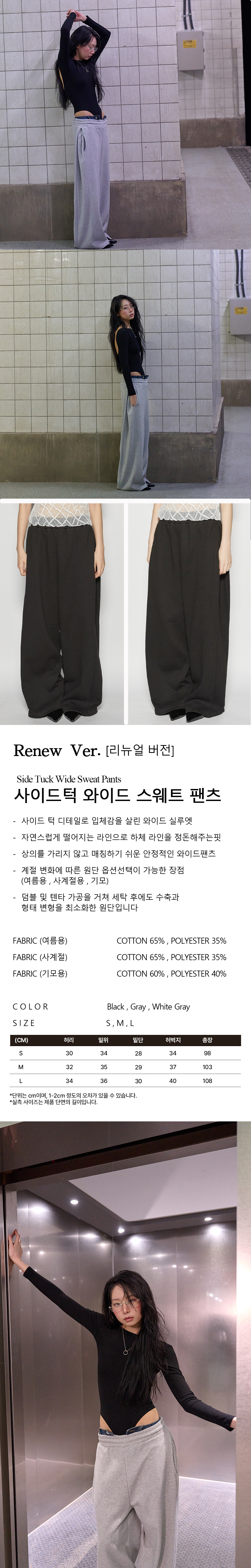 (Renew Ver.)사이드턱 스웨트 와이드 팬츠_3color