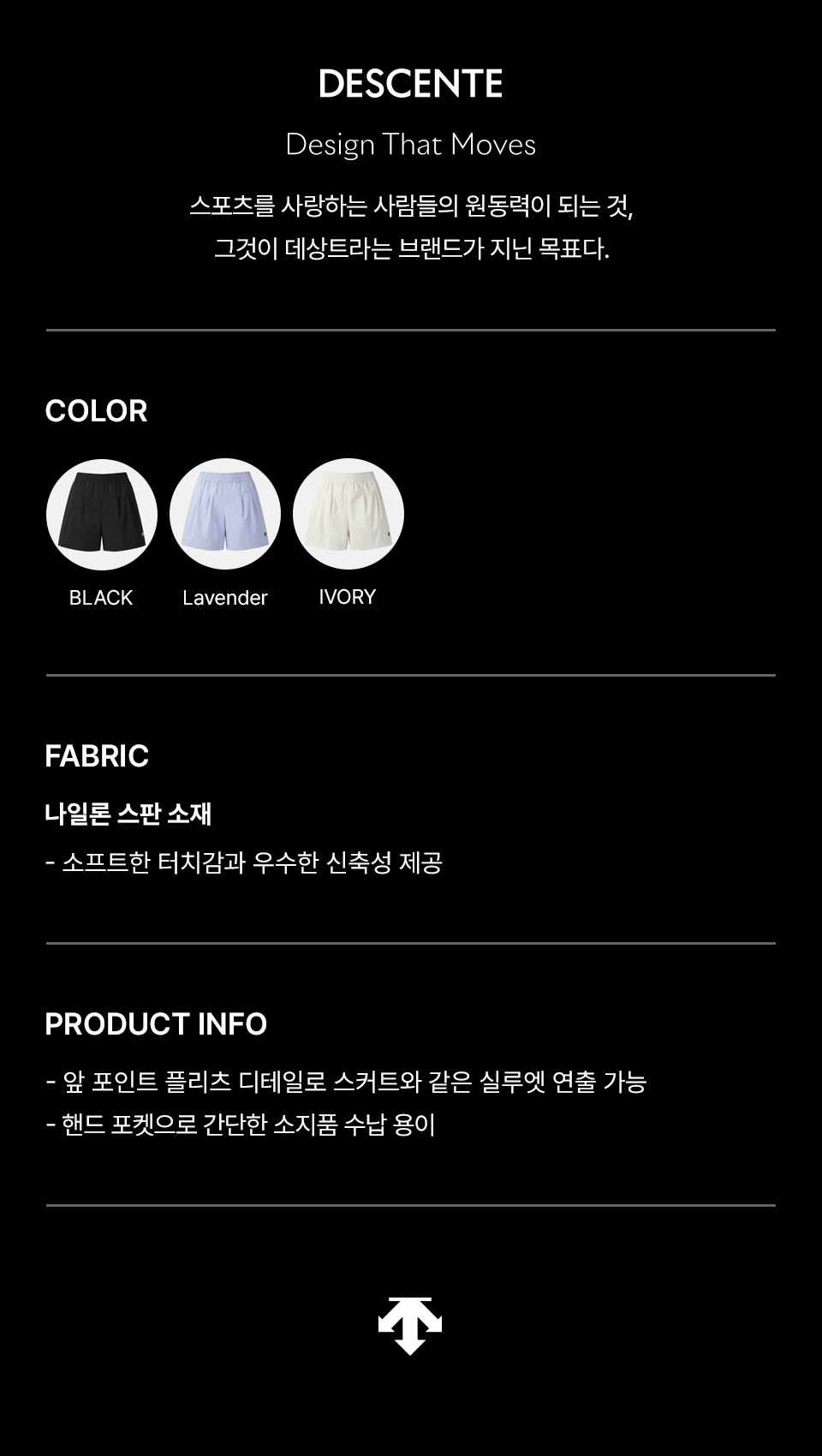 | 소재 | [BLK0]겉감:나일론(91)폴리우레탄(9),[IVY0]겉감:나일론(91)폴리우레탄(9),[LVND]겉감:나일론(91)폴리우레탄(9) (입고 시기에 따라 정보가 상이할 수 있어, 수령하신 상품의 라벨을 참고하시기 바랍니다.) |
