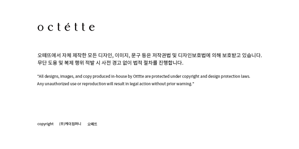 오떼뜨(OCTETTE)은 일상에 깃든 소소한 행복을 패션으로 표현하며, 모던을 기반으로 특별하고 우아한 일상을 제안하는 컨템포러리 브랜드입니다.