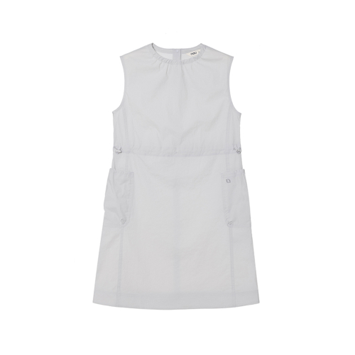 자연스러운 실루엣으로 편안하게 착용할 수 있는 아동용 민소매 원피스입니다.