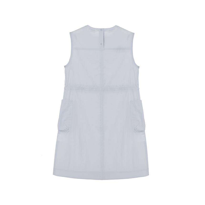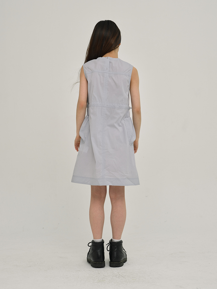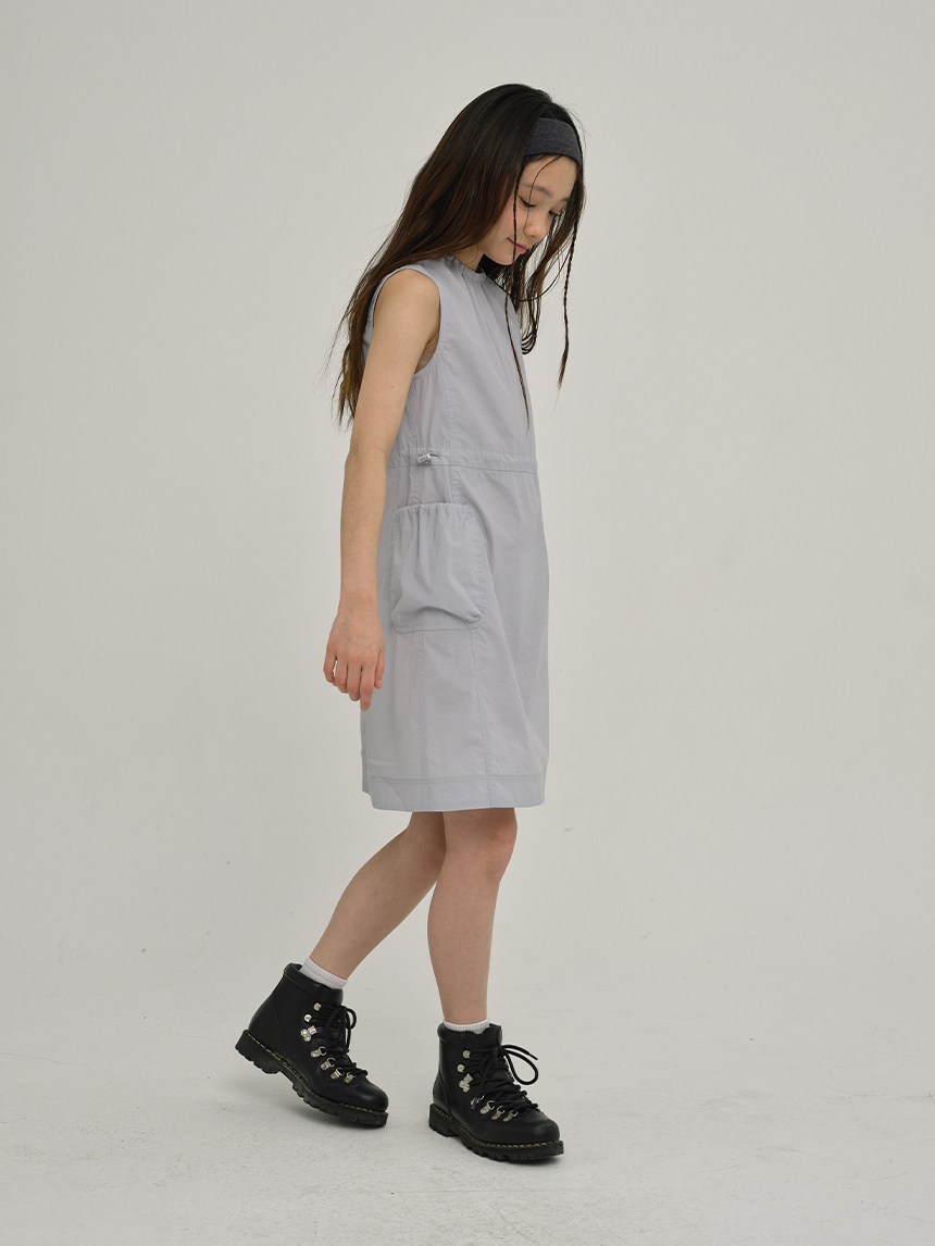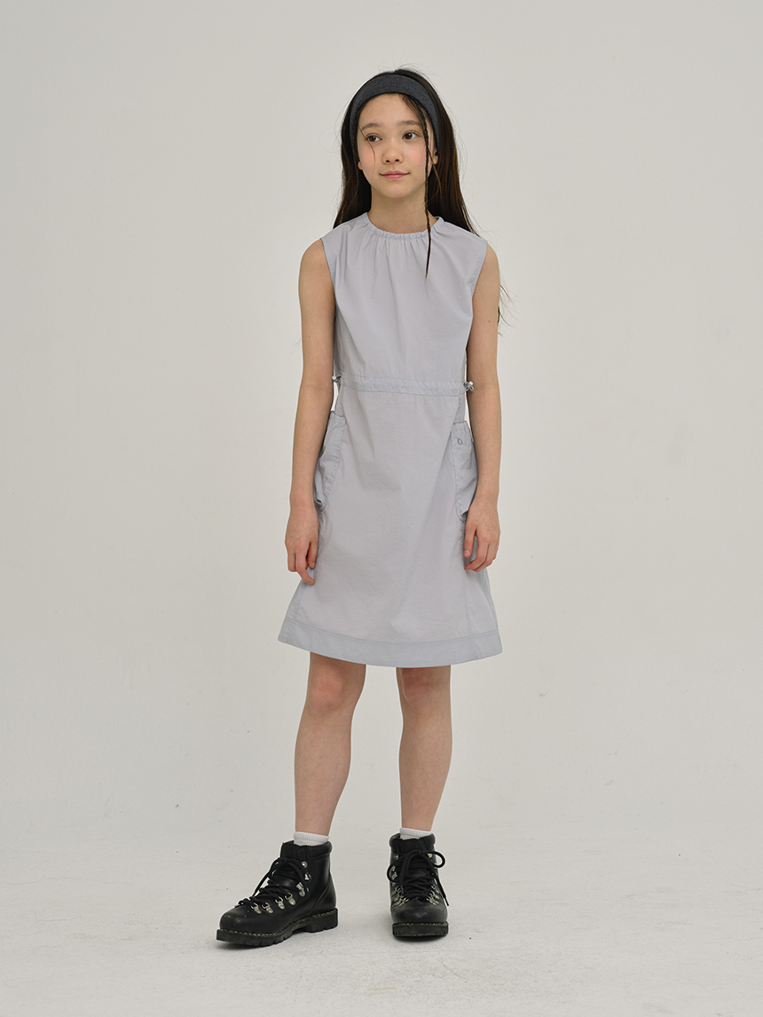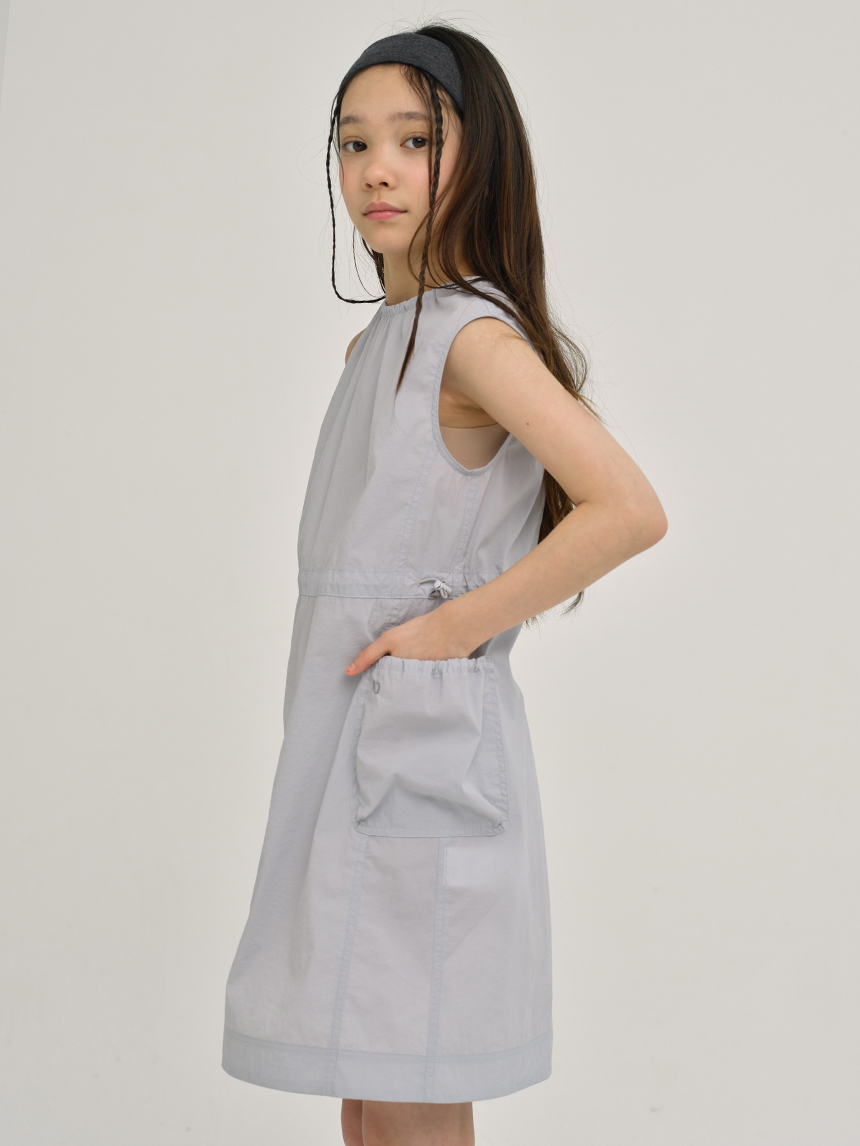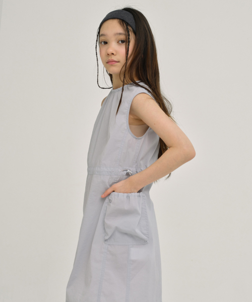 자연스러운 실루엣으로 편안하게 착용할 수 있는 아동용 민소매 원피스입니다.