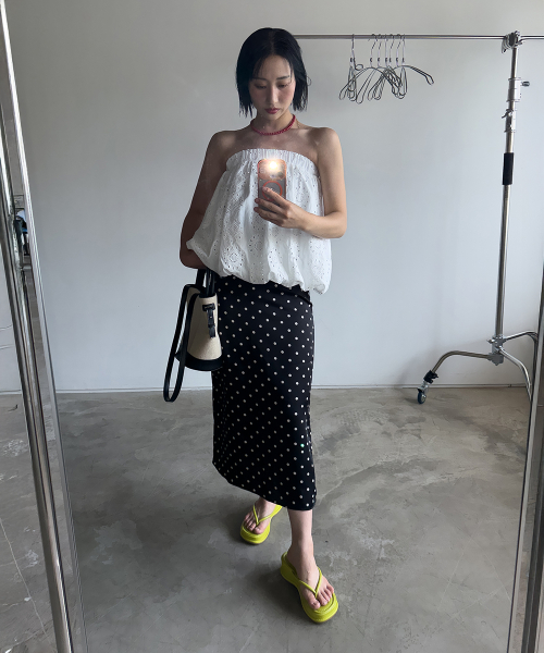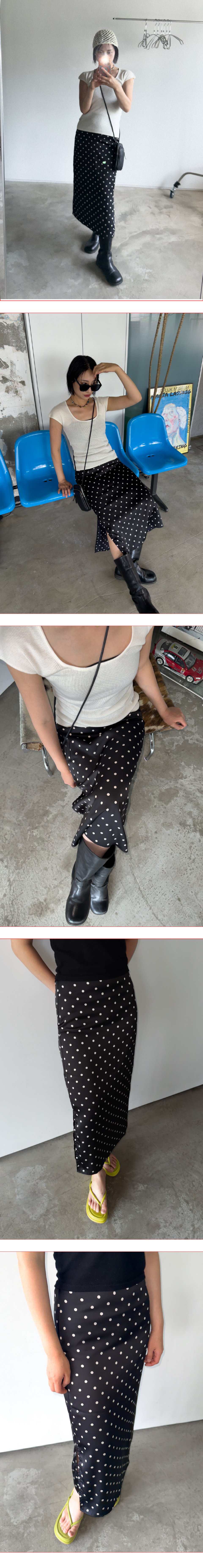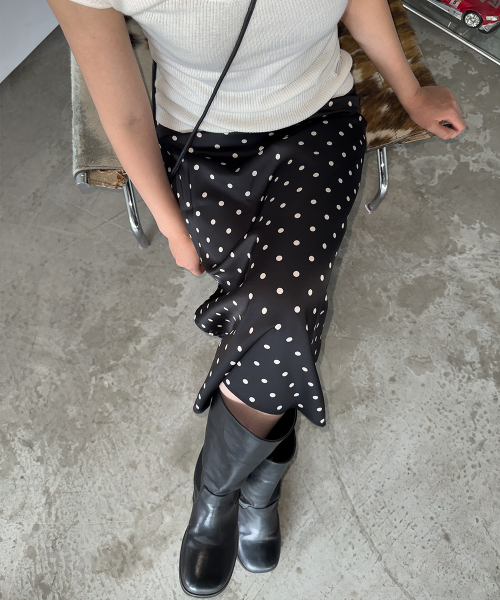 Polka Dot Banding Skirt Black