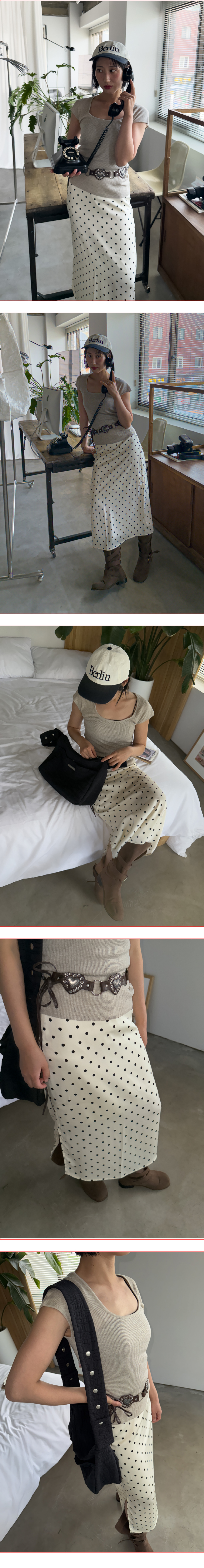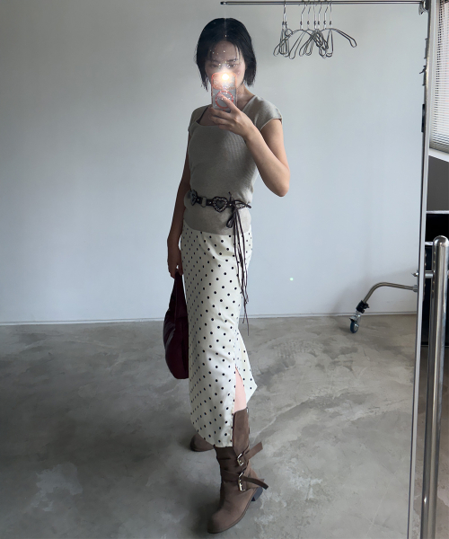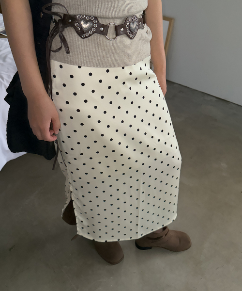 Polka Dot Banding Skirt Ivory