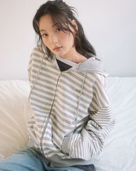 MULTI STRIPE ZIP UP HOOD(GREY)