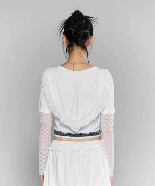 - 두 겹의 레이스 프릴이 달린, 귀여운 스타일의 후드 가디건