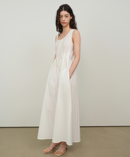 스트링 슬리브리스 드레스 / 화이트