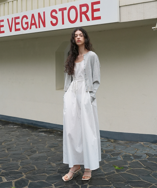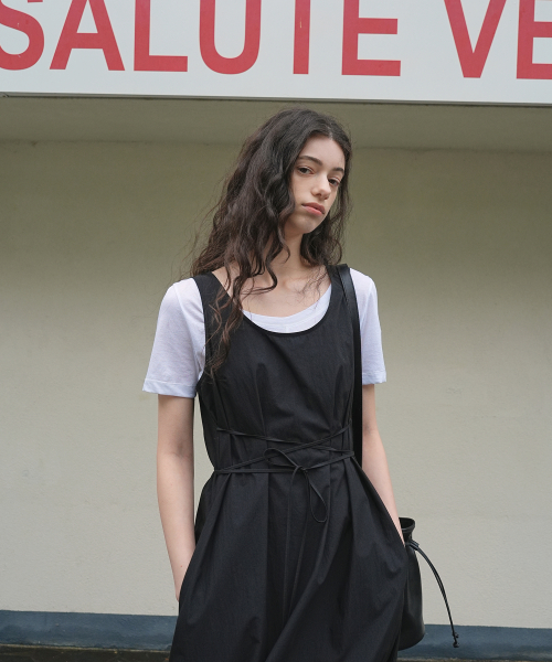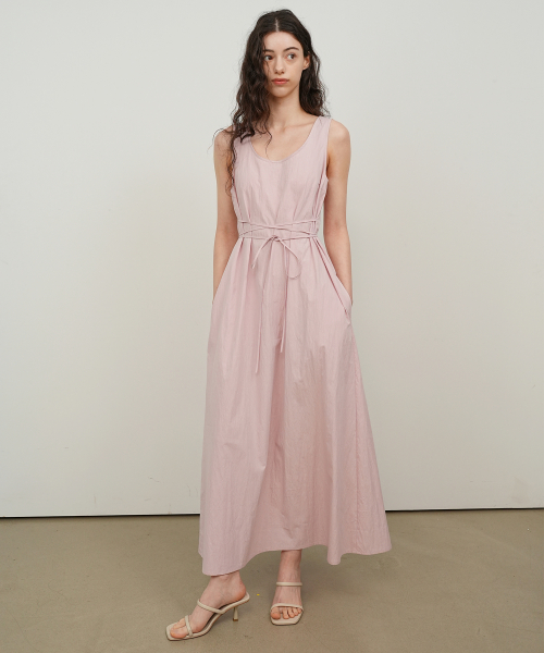 스트링 슬리브리스 드레스