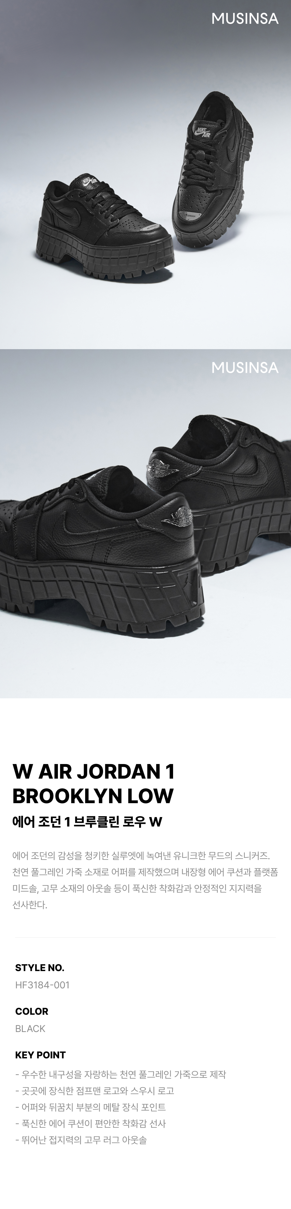 에어 조던 1 브루클린 로우 W - 블랙:화이트:메탈릭 블랙 / HF3184-001