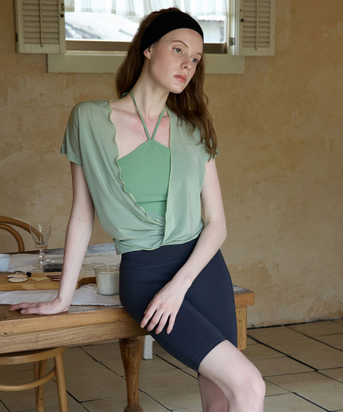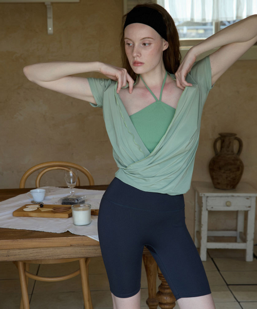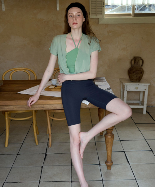 여성 요가복 DEVI-B0013-에쉬그린 필라테스 군살제로 바이커 5부