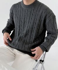 오버핏 라운드 케이블 니트 Charcoal