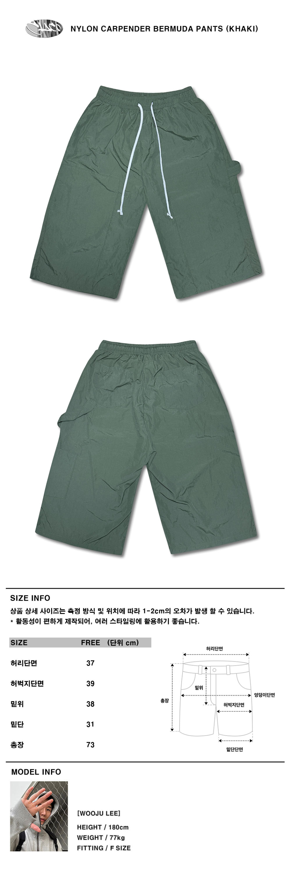 나일론 카펜터 버뮤다 팬츠 (카키)