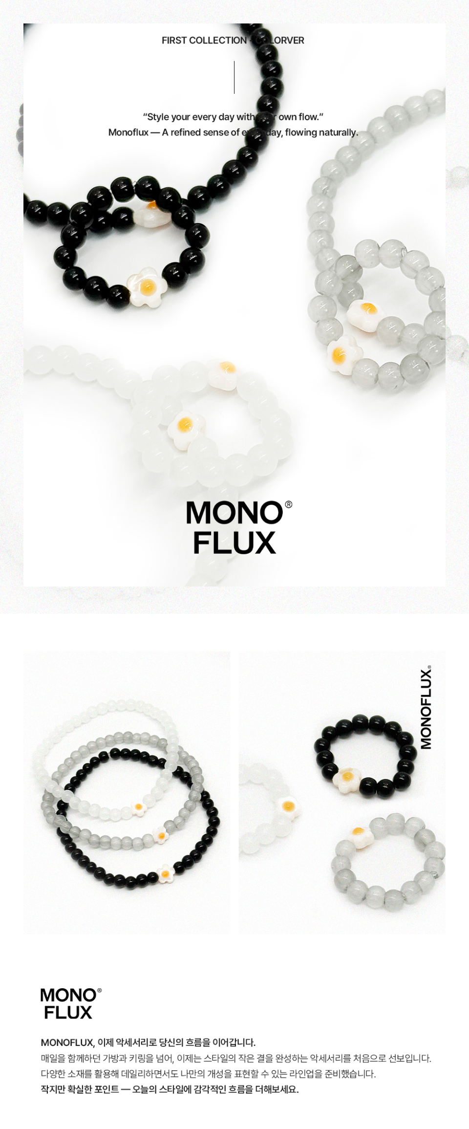 모노플럭스(MONOFLUX)는 유니섹스 기반의 데일리 아이템을 제안하는 브랜드입니다. 일상 속에서 자연스럽게 스며드는 ‘개인의 취향’을 존중하며, 감각적인 실용성과 커스터마이징 가능한 제품을 통해 나만의 스타일을 완성하는 여유를 전합니다.