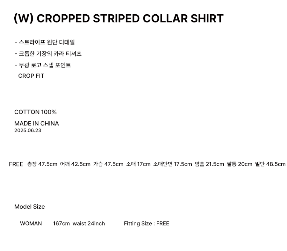 [SEASON OFF] (W)크롭 스트라이프 카라티셔츠